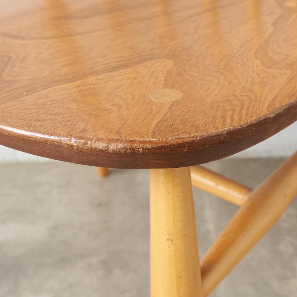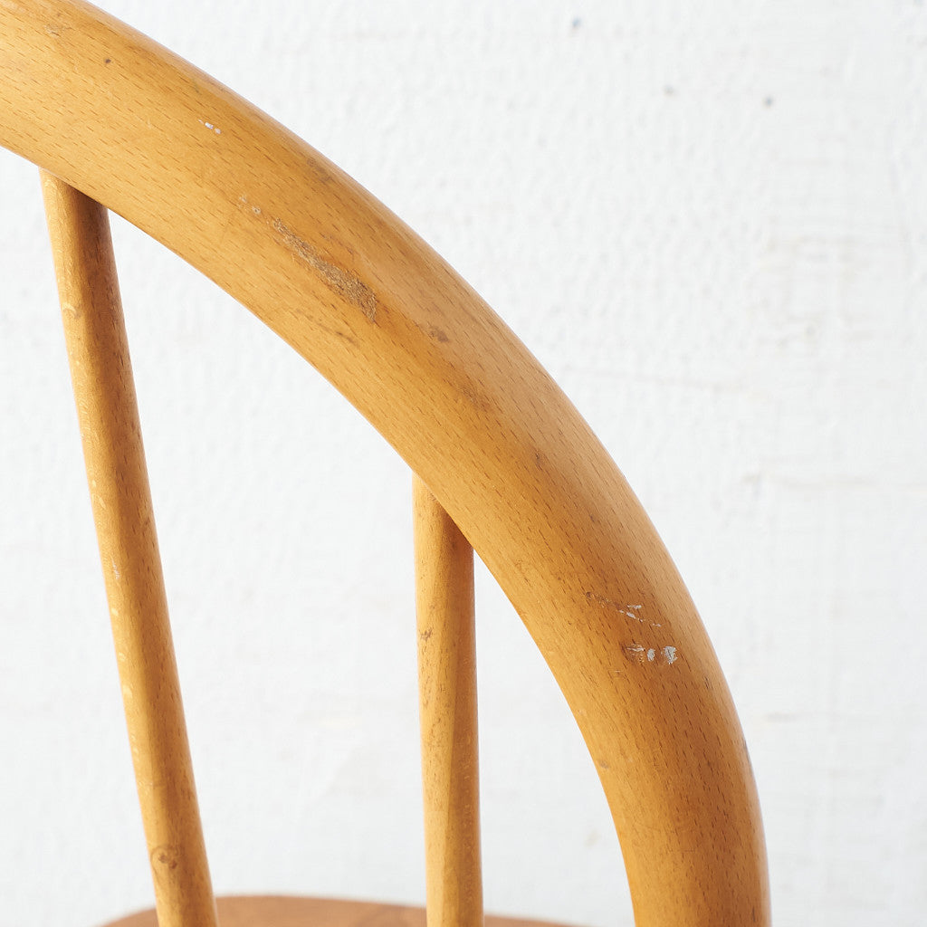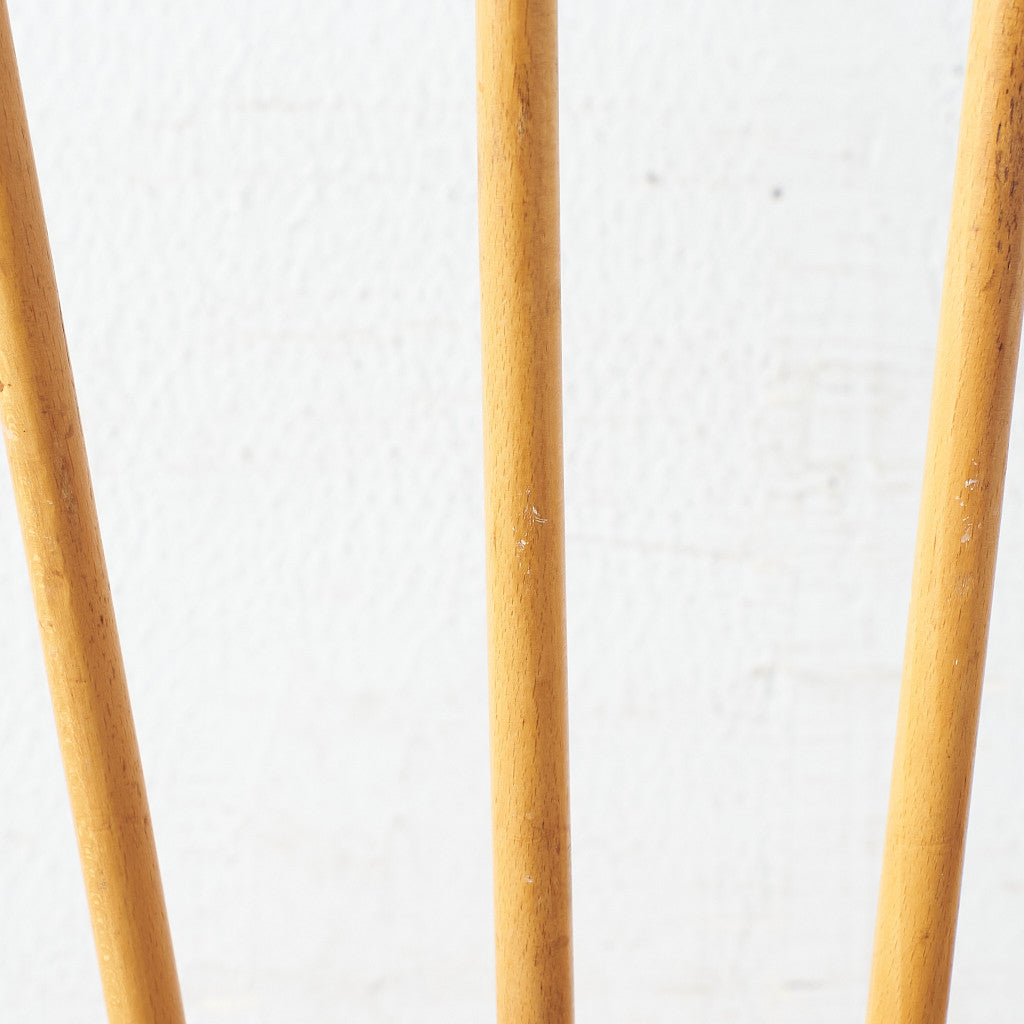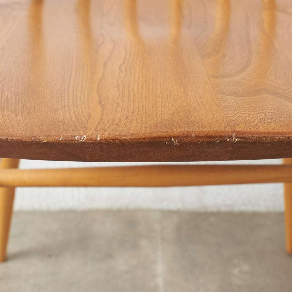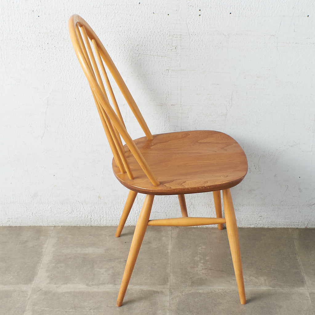 ERCOLのアイコン的存在であるウィンザーチェアシリーズの中で、最もオーソドックスなスタイルのフープバックチェアは「ボウバック(弓型の背もたれ)」という、クラシカルなデザインをベースに作られています。様々なバージョンがあり、背もたれのスポーク数が4本、5本、6本の3タイプ、座面はノーマル型とバイオリン型の2タイプ、大きさはノーマルサイズとラージサイズがあり、さらに6本スポークのチェアにはストレートレッグやアーム付きなどが存在し、その種類の豊富さもコレクター心をくすぐる大きな魅力となっています。