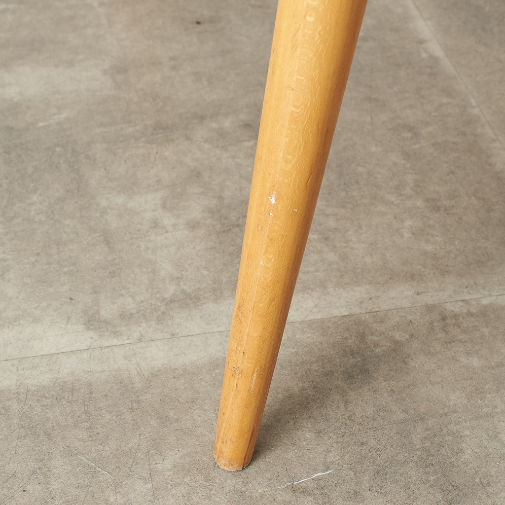アーコール社は現存するイギリスの老舗家具メーカー。新品家具としてもアンティーク品としても同一のモデルで同様に高い支持を受け続けている稀有なブランドです。20世紀初頭にイギリスに移住してきたイタリア生まれの家具デザイナー "ルシアン・アーコラーニ"によって、1920年にハイ・ワイコムにアーコールファニチャーは設立されました。ERCOL社の成功のポイントとして当時乾燥が難しく歪みが生じるため家具材としては不適格として安価であったエルム材の乾燥方法を編み出したことがあります。ウィンザーチェアーに代表される伝統的な製法と、モダンデザインを融合させたコレクションは、さりげないデザインで軽やかでシンプル。1957年デザインのスタッキングチャイルドチェアーは、小学校などの施設で多く使用され一躍ベストセラーブランドとなりました。近年マーガレット・ハウエル(英国の服飾デザイナー)は、アーコール社スタッキングチャイルドチェアーのヴィンテージ品をロンドンショップで展示し、アーコールチェアーは大好評を得ることになりました。それをきっかけにアーコール社は2002年から同商品の復刻版の製造を開始するまでになります。 その後マーガレット・ハウエルのショップでもこの復刻版は販売されることとなり、たちまち人気が高まりました。イエロー×ゴールドの通称ゴールドラベルがついた1960年代〜70年代頃アーコール全盛期の品物は以前よりプレミアム的に価値で取引されておりましたが、近年ではそれ以前のヴィンテージ品ブルーラベルのお品物も含めてイギリス現地で一昔前の倍近くの取引相場にまで高騰しています。