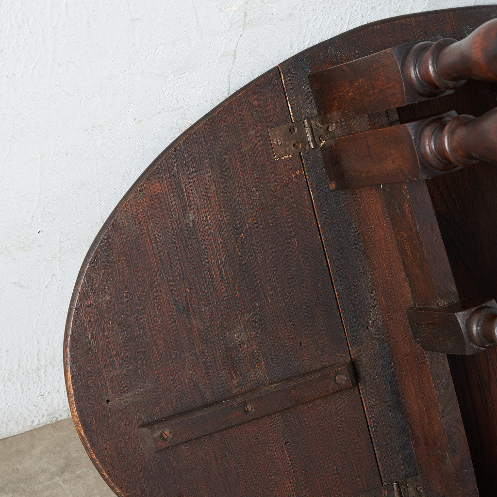 古き良き西欧の伝統を感じさせるクラシカルなデザインに味わい深いオーク材の木肌が上品な一品。ダイニングテーブルやカフェテーブルとしてはもちろん、折りたたんだ状態で壁に付け、コンソールテーブルとしてもお使いいただけます。