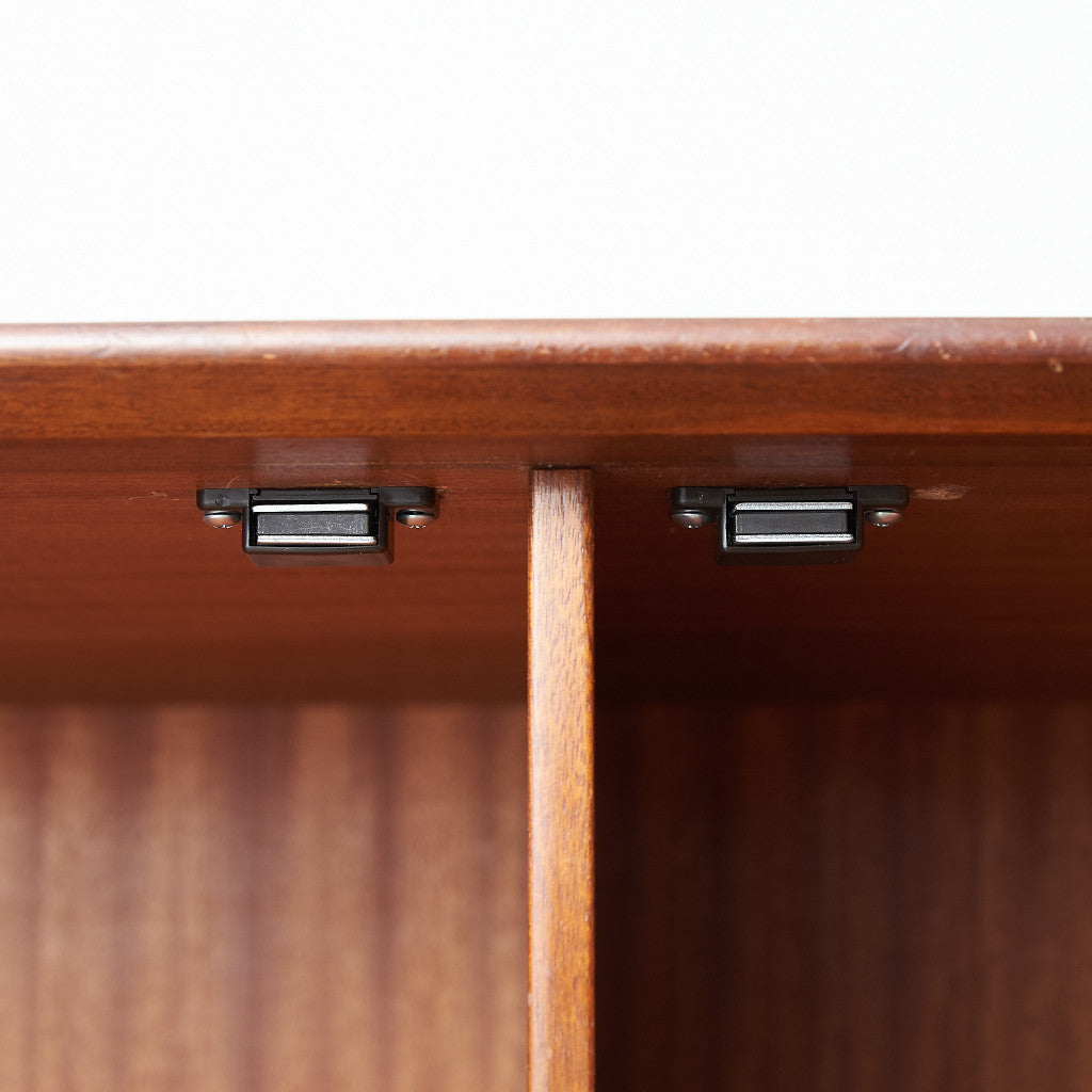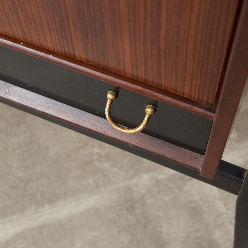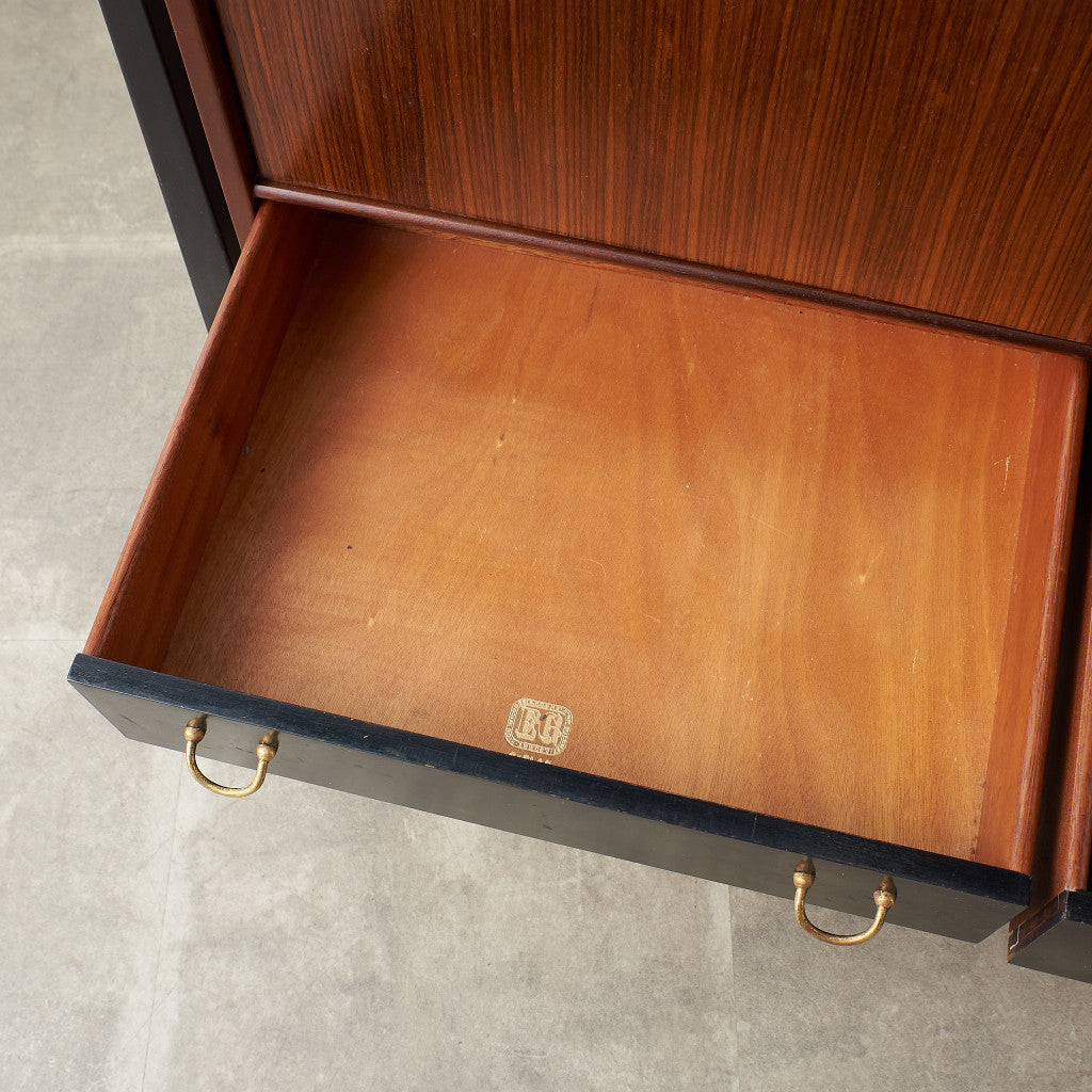 1958年に発売されたTola&Black(トーラ&ブラック)。日本の漆塗りに着想を得てヨーロッパで黒塗りの家具が流行した1950年代に展開されたシリーズです。スタイリッシュで洗練された雰囲気が印象的で、トーラ材の美しい色調とブラックペイントや、真鍮メッキのゴールドのコントラストが目を惹きます。別名BB(Black&Brass)シリーズとも呼ばれ、現在でも人気の高いTola&BlackはG-PLANの中でも流通量が少なく、なかなか手に入りにくい希少価値の高いシリーズです。