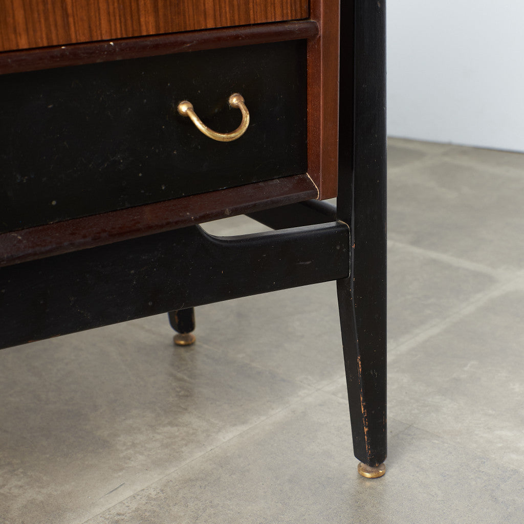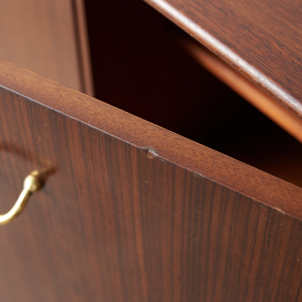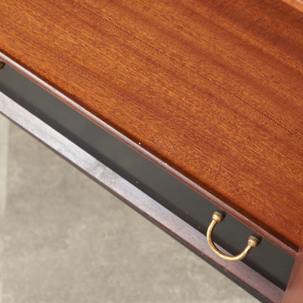 1958年に発売されたTola&Black(トーラ&ブラック)。日本の漆塗りに着想を得てヨーロッパで黒塗りの家具が流行した1950年代に展開されたシリーズです。スタイリッシュで洗練された雰囲気が印象的で、トーラ材の美しい色調とブラックペイントや、真鍮メッキのゴールドのコントラストが目を惹きます。別名BB(Black&Brass)シリーズとも呼ばれ、現在でも人気の高いTola&BlackはG-PLANの中でも流通量が少なく、なかなか手に入りにくい希少価値の高いシリーズです。