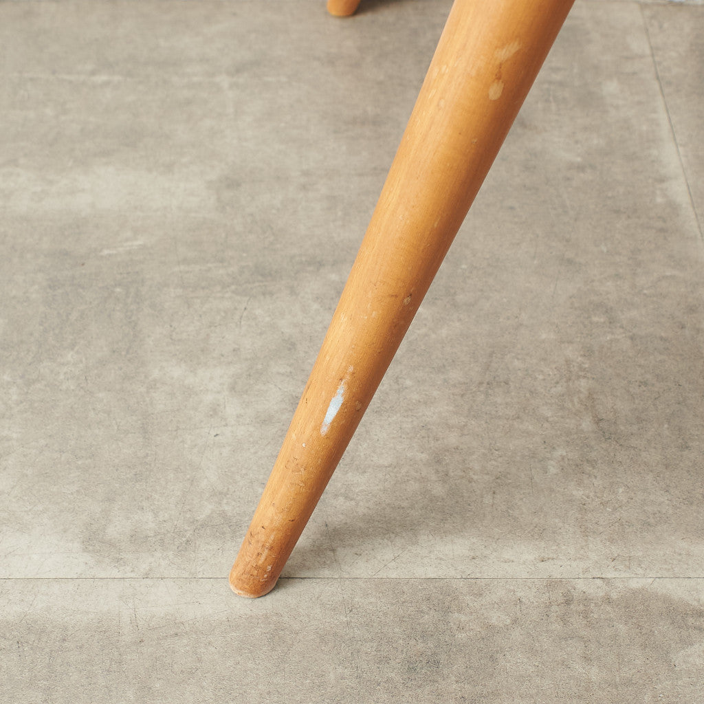 アーコール社は現存するイギリスの老舗家具メーカー。新品家具としてもアンティーク品としても同一のモデルで同様に高い支持を受け続けている稀有なブランドです。20世紀初頭にイギリスに移住してきたイタリア生まれの家具デザイナー "ルシアン・アーコラーニ"によって、1920年にハイ・ワイコムにアーコールファニチャーは設立されました。ERCOL社の成功のポイントとして当時乾燥が難しく歪みが生じるため家具材としては不適格として安価であったエルム材の乾燥方法を編み出したことがあります。ウィンザーチェアーに代表される伝統的な製法と、モダンデザインを融合させたコレクションは、さりげないデザインで軽やかでシンプル。1957年デザインのスタッキングチャイルドチェアーは、小学校などの施設で多く使用され一躍ベストセラーブランドとなりました。近年マーガレット・ハウエル(英国の服飾デザイナー)は、アーコール社スタッキングチャイルドチェアーのヴィンテージ品をロンドンショップで展示し、アーコールチェアーは大好評を得ることになりました。それをきっかけにアーコール社は2002年から同商品の復刻版の製造を開始するまでになります。 その後マーガレット・ハウエルのショップでもこの復刻版は販売されることとなり、たちまち人気が高まりました。イエロー×ゴールドの通称ゴールドラベルがついた1960年代〜70年代頃アーコール全盛期の品物は以前よりプレミアム的に価値で取引されておりましたが、近年ではそれ以前のヴィンテージ品ブルーラベルのお品物も含めてイギリス現地で一昔前の倍近くの取引相場にまで高騰しています。