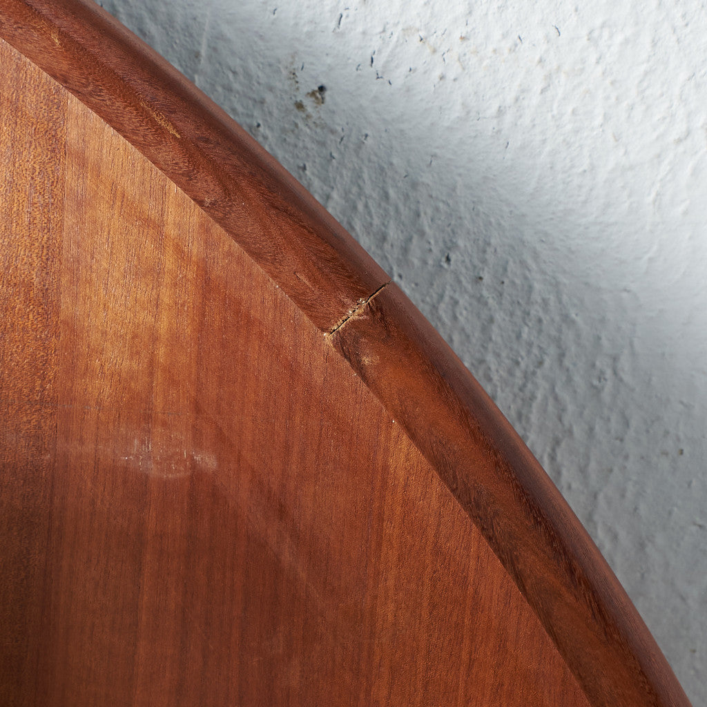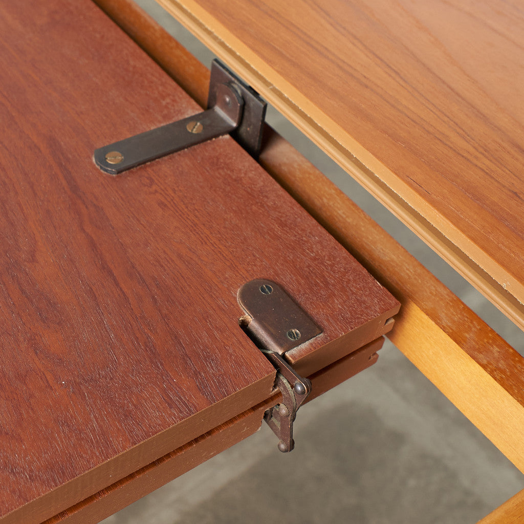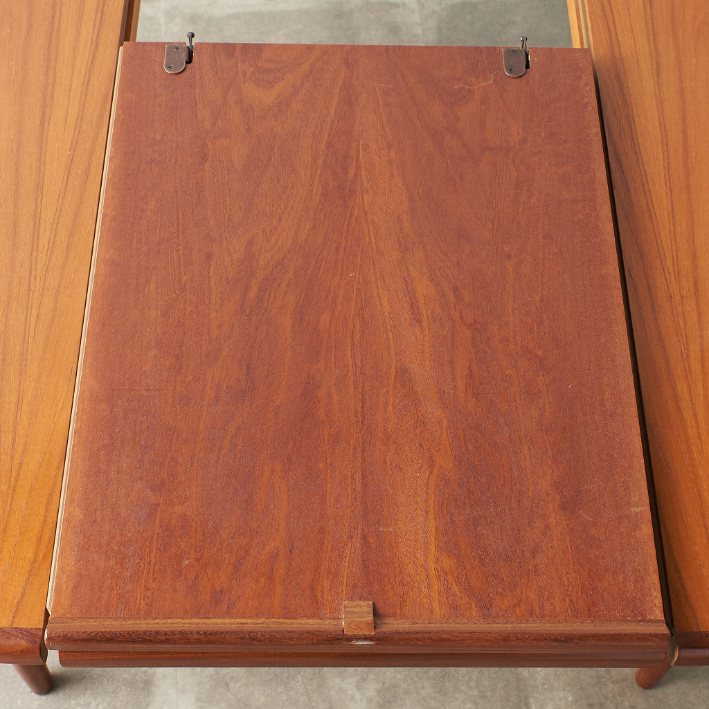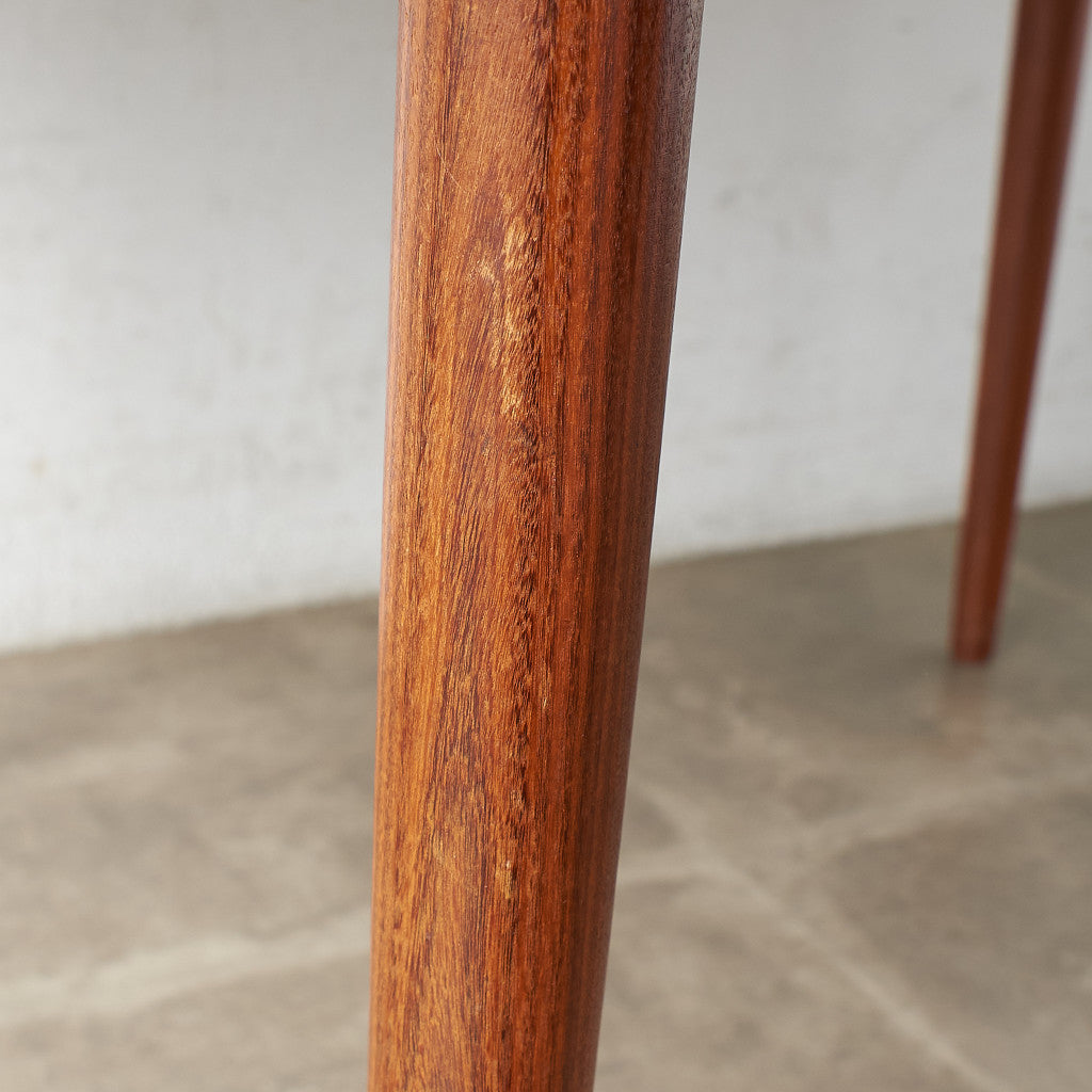 ミッドセンチュリーG-PLANコレクションの中心とも言える定番モデルのラウンドエクステンションテーブル。G-PLANのカタログにおいてもフレスコ、シエラ、ダニッシュ等のチーク材を用いたシリーズで横断的に組み合わせられるベーシックかつ汎用性の高いテーブルです。トップにはチーク、脚と縁には濃色の材を用いたバイカラー仕様。天板下に収納された拡張天板を中央に展開させることでテーブルの上はそのままに簡単にサイズの拡張が可能なエクステンションテーブルです。普段は2人〜4人用、来客時などは天板をさっと広げて6人用としてお使いいただけます。