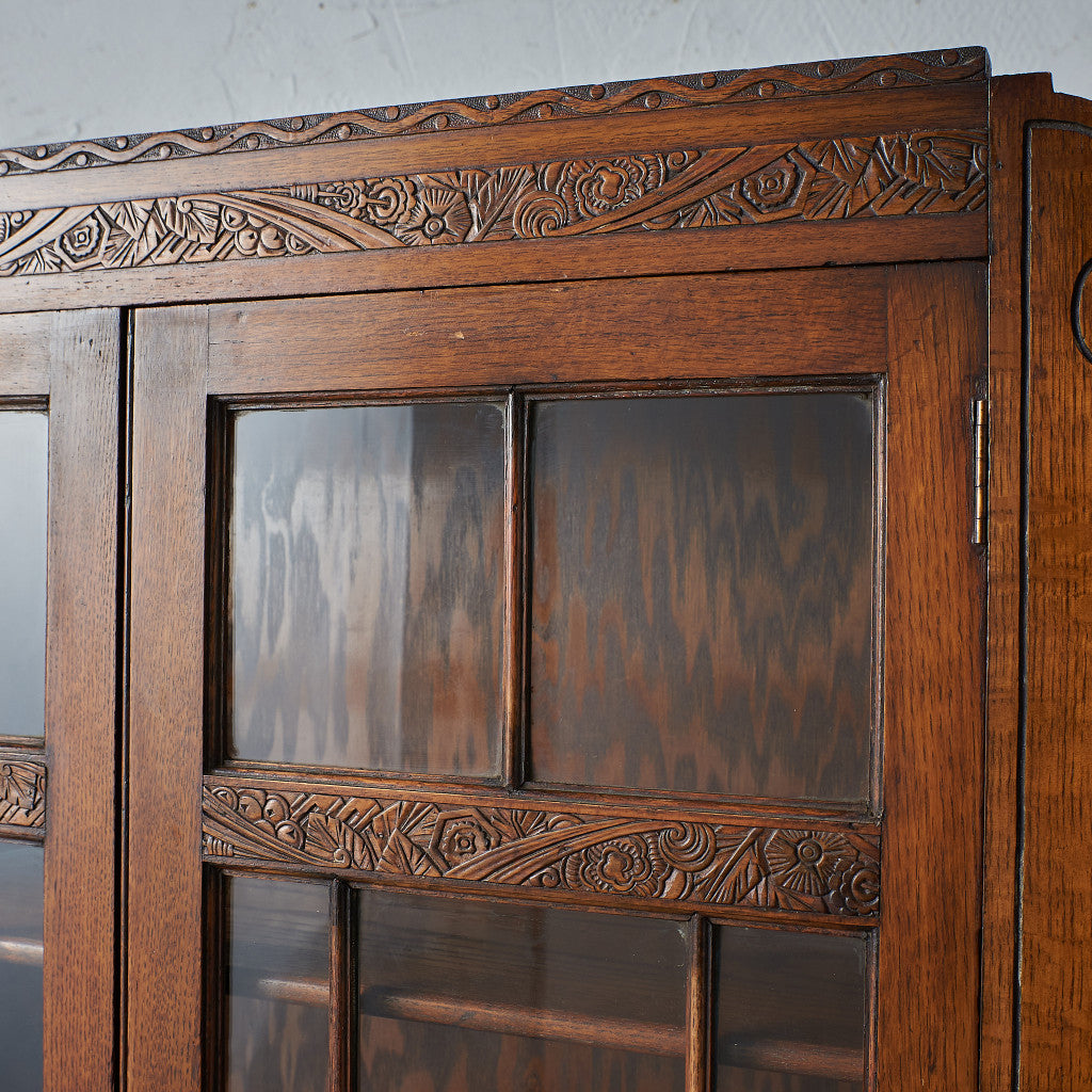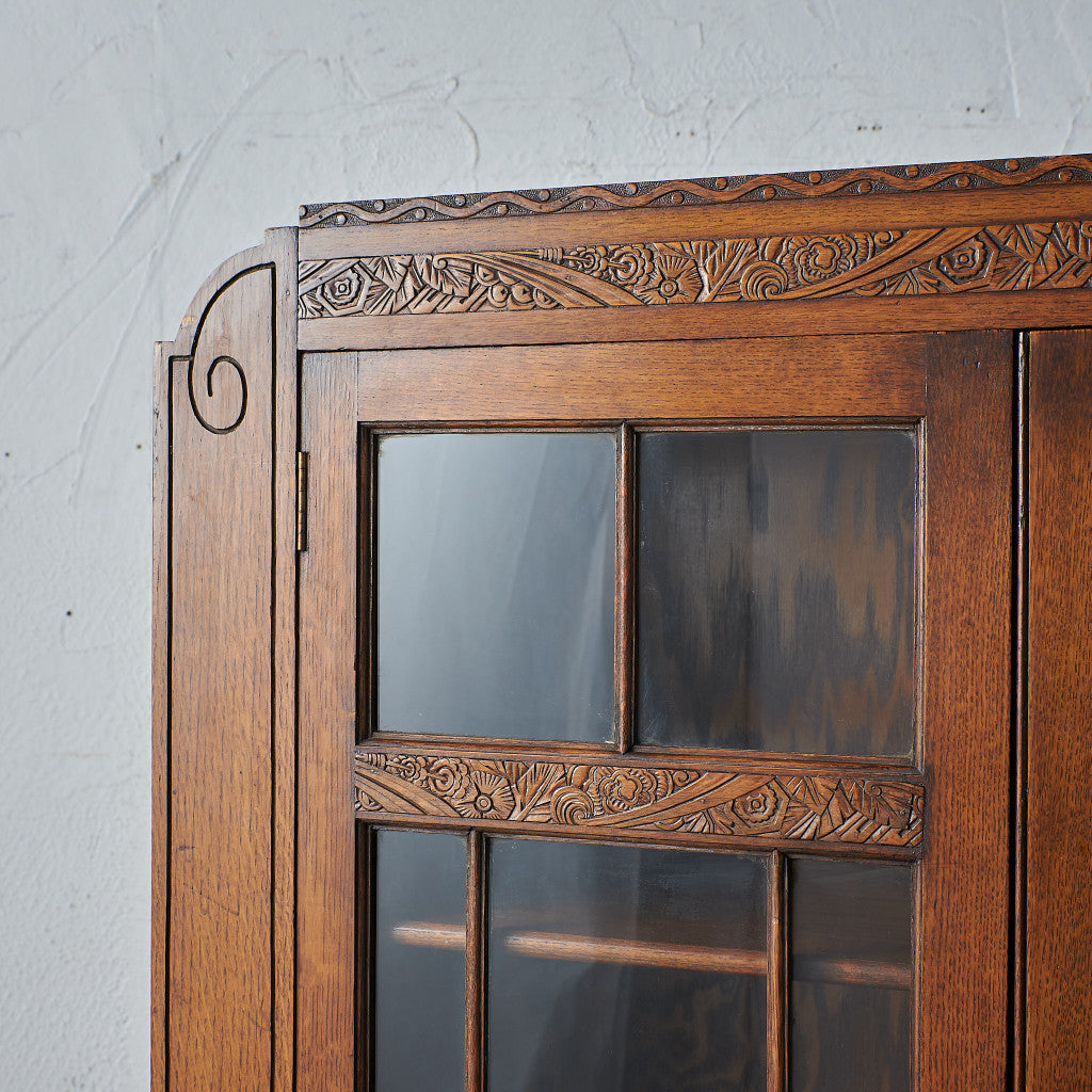 鮮やかな虎斑が特徴のオーク材を使用。アールデコスタイルの繊細な木彫装飾など、随所に美しいディテールを備えた上質なお品です。本棚としてはもちろん、ディスプレイ用のショーケースとしてもお使いいただけます。