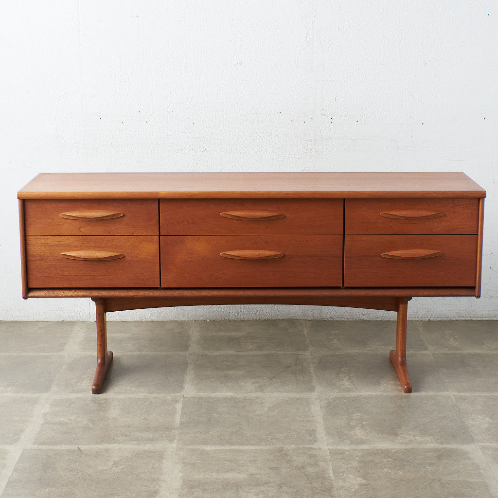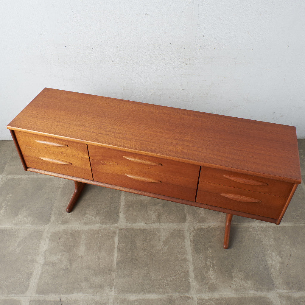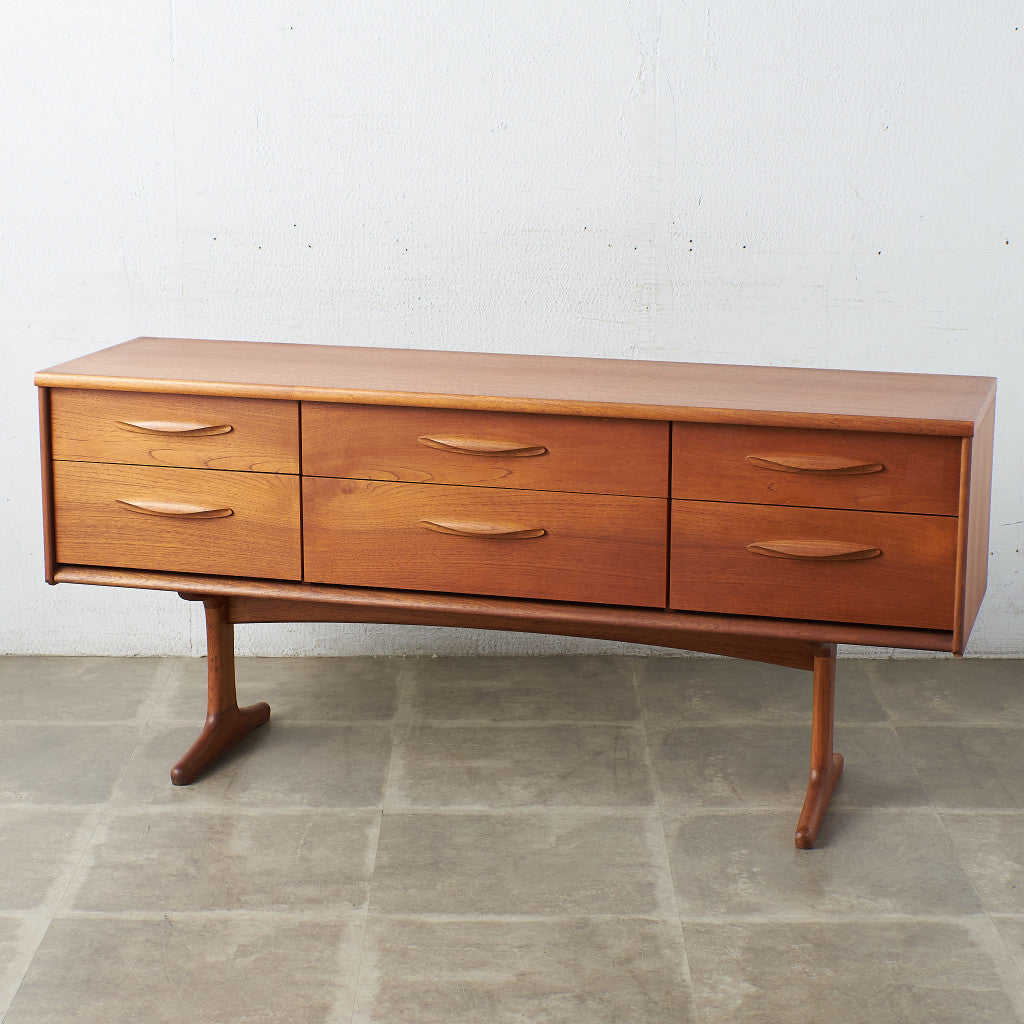オースティン4兄弟によって1928年にロンドンで設立された家具メーカー。60年代に入るとG-PLANや A.H. Mcintosh同様にチークやアフロモシアを用いた北欧スタイルの家具を製作し、シンプルで高品質の家具が人気となりました。直線的なデザインに、脚や取っ手、天板のエッジやミラーの枠などワンポイントの曲線を入れるデザインが特徴です。