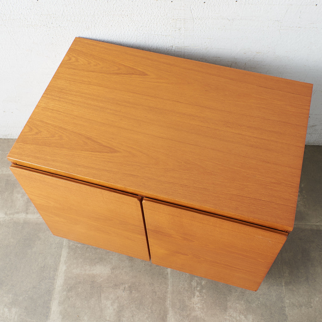 デンマークスタイルのデザインをルーツに独自のアレンジが施されたキャビネット。現代の間取りでも使いやすいサイズ感、シンプルなデザインが魅力です。実用的でありながらも作り手のこだわりを感じさせるヴィンテージファニチャーです。