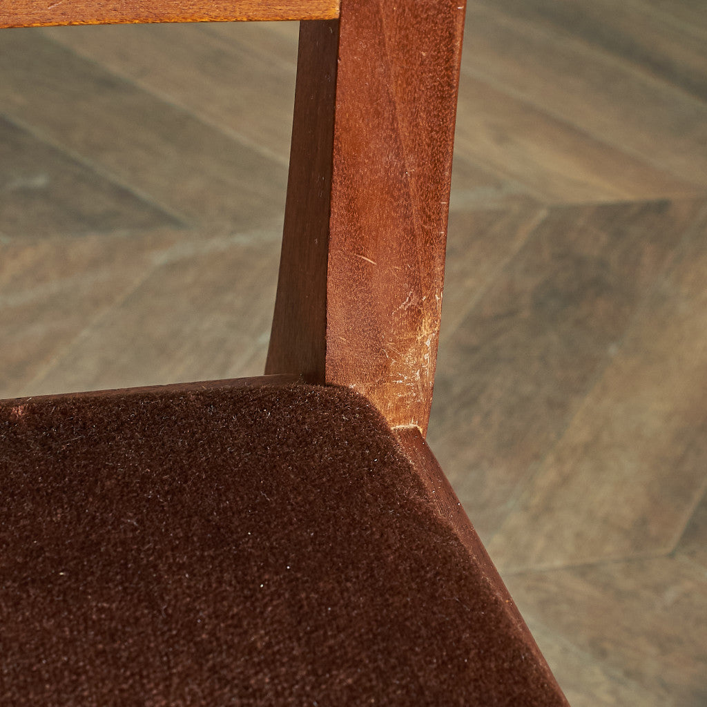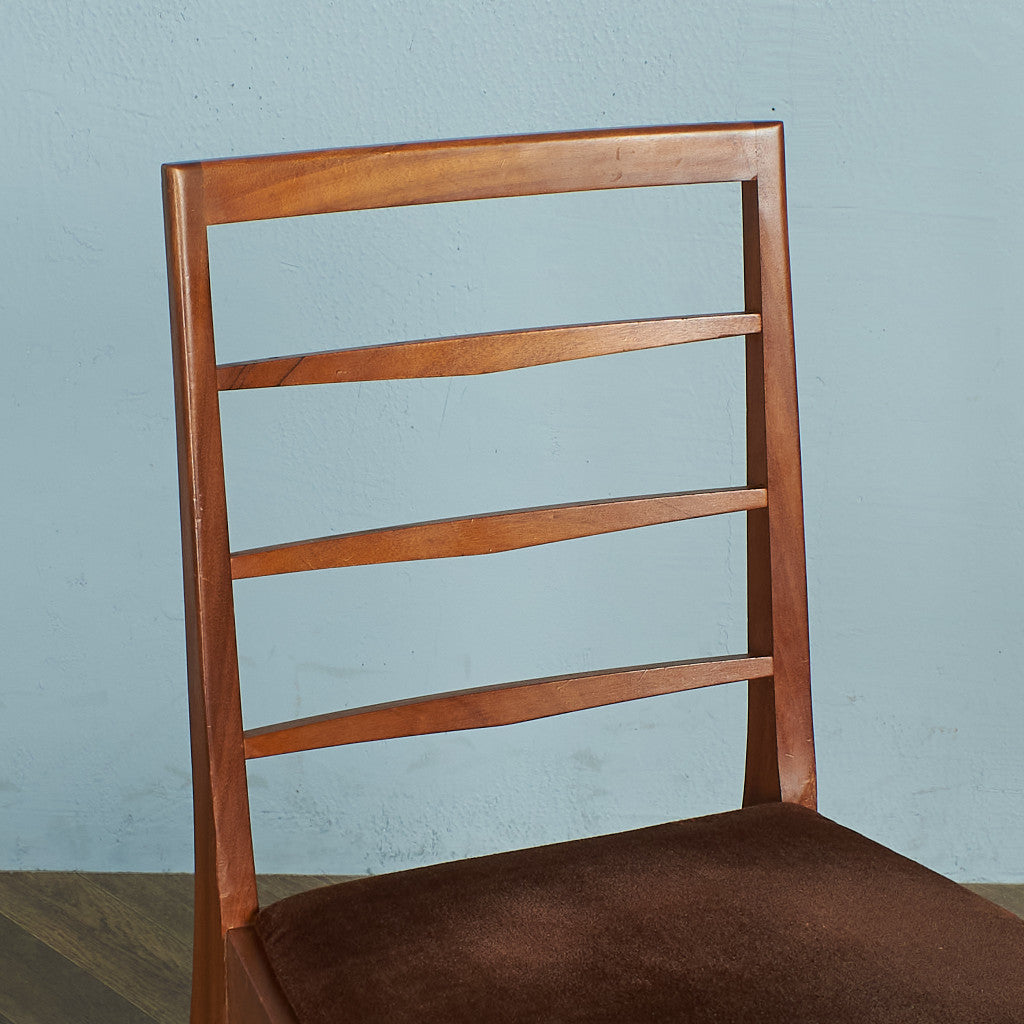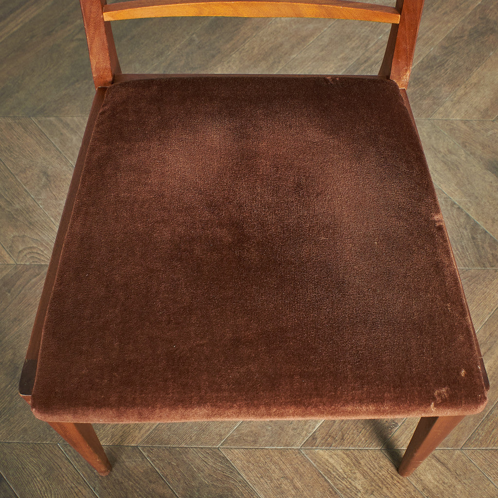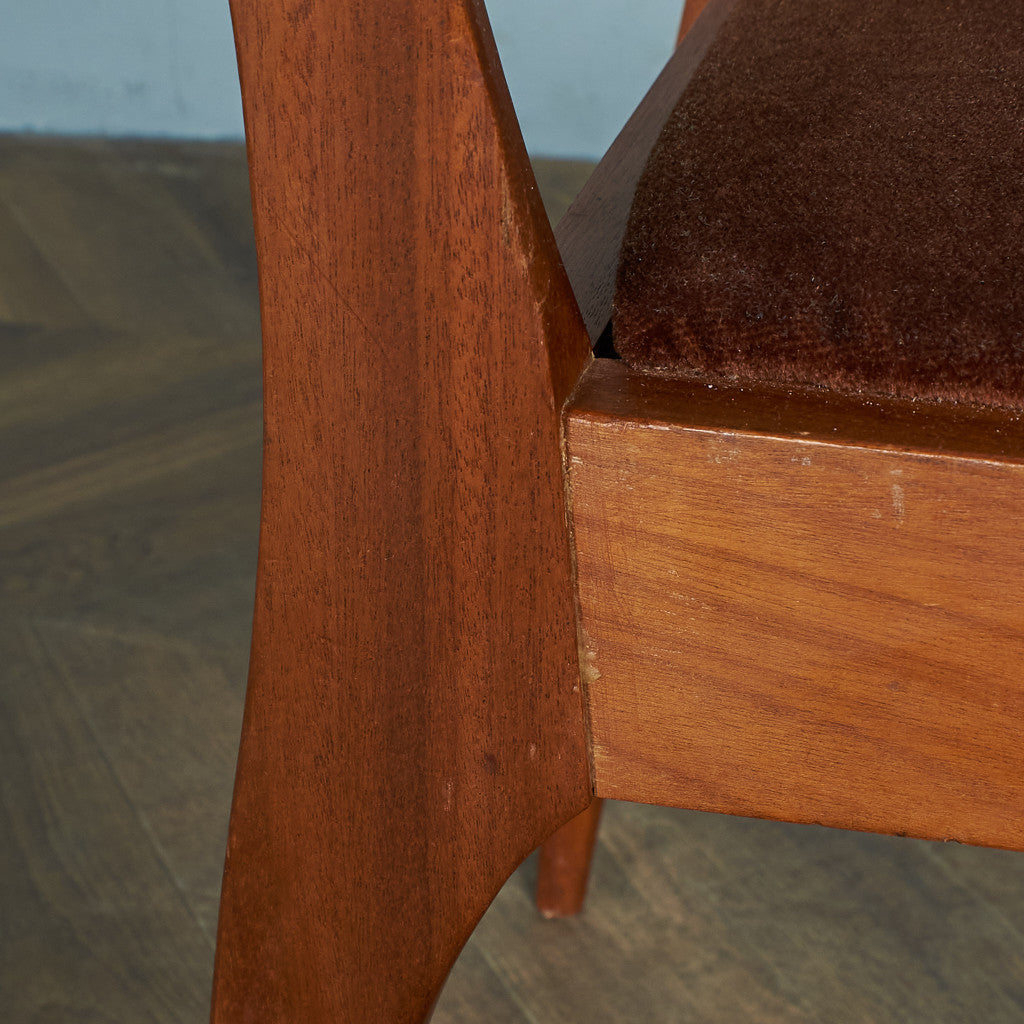繊細なディテールとデザイン性を備えた一品。チェアフレームは取っ手を兼ねた笠木となめらかなアールが加えられ、背もたれ板の組み合わせが非常に印象的です。G-PLANの家具とは一味違った美しさと魅力を持った、McINTOSHならではと言えるダイニングチェアです。