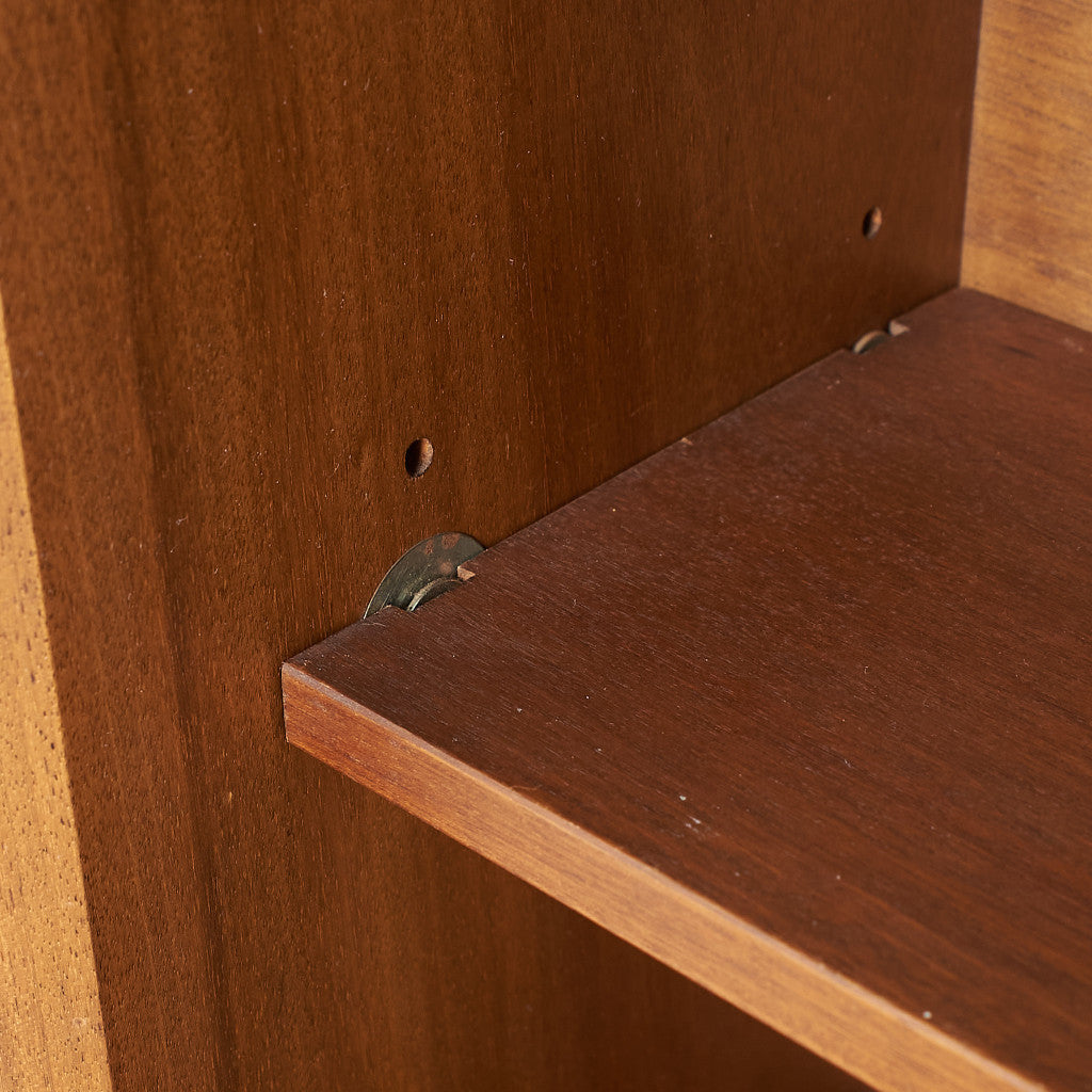 小さな文庫書籍や食器、コレクションなど見せる収納に最適な薄型タイプです。温かみのある褐色の木肌が印象的。実用的でありながらも作り手のこだわりを感じさせる、北欧の年代物とも相性の良いヴィンテージファニチャーです。