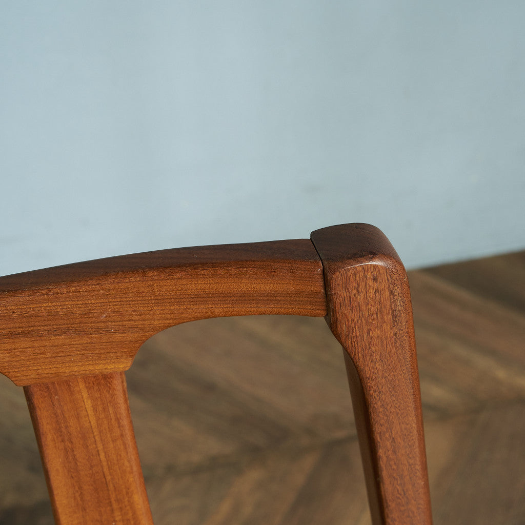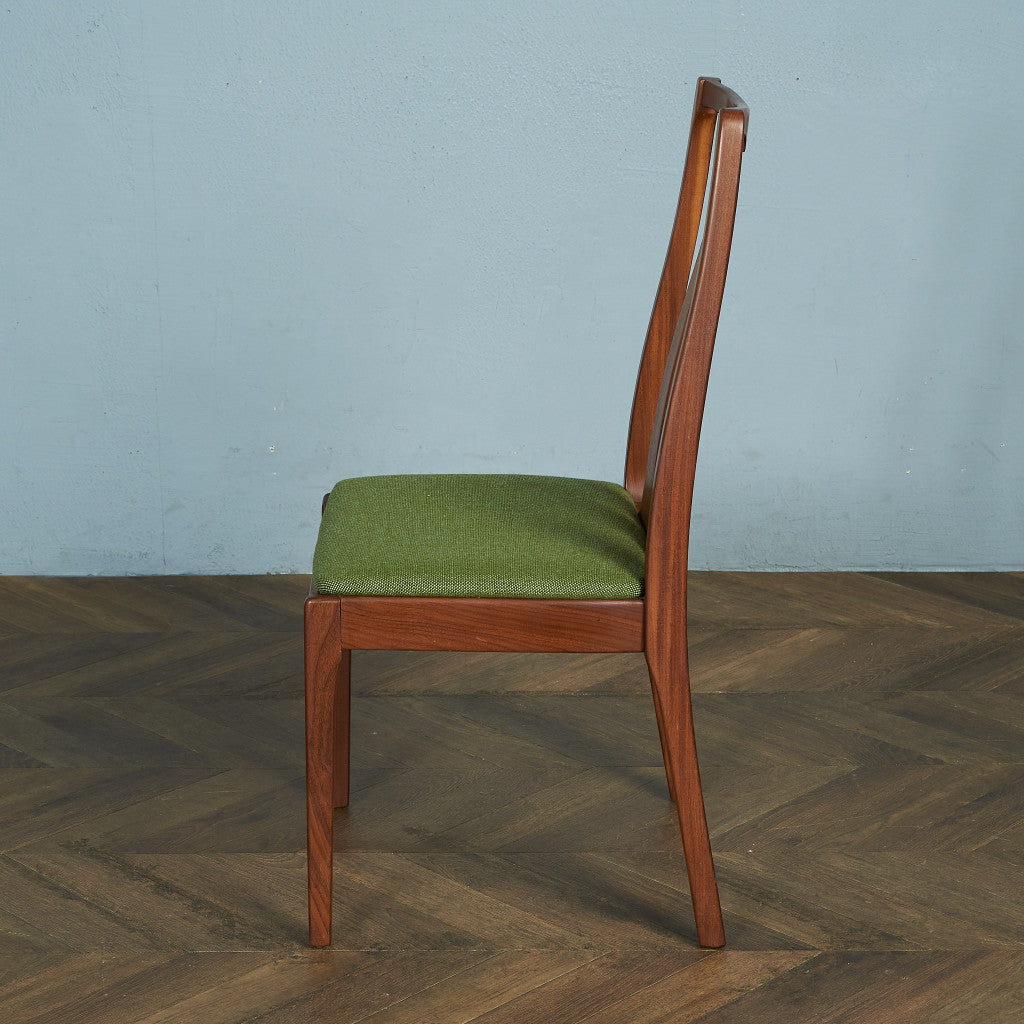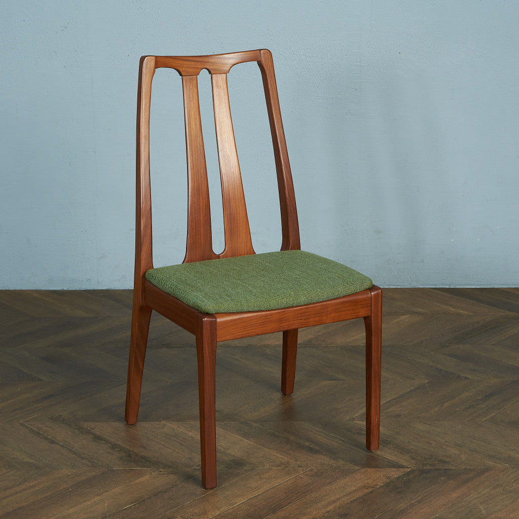 今では希少な高級材であるチーク材を使用した温かみのあるハイバックダイニングチェア。背もたれの緩やかなカーブが絶妙なフィット感を生み、快適な座り心地を実現しています。実用的でありながらも作り手のこだわりを感じさせる、英国ヴィンテージファニチャーです。
