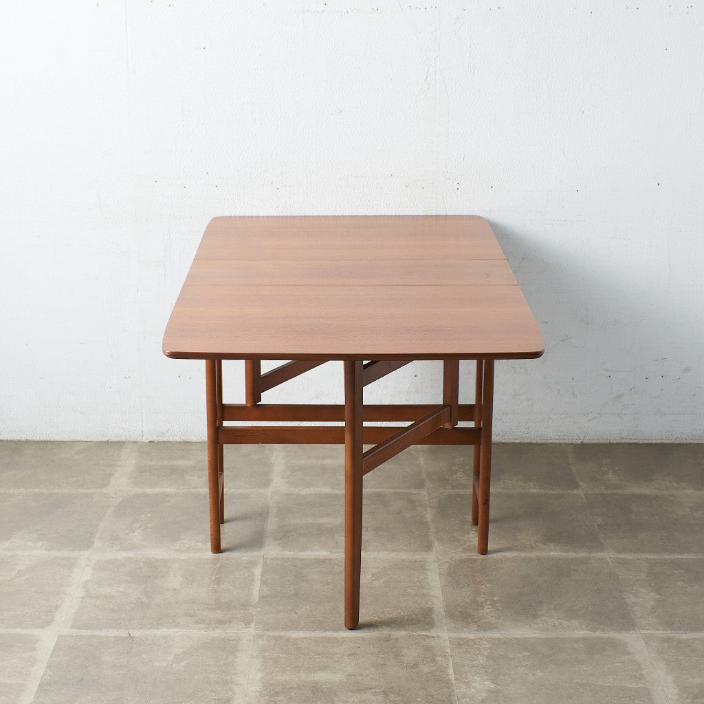 希少な高級材チークを天板に使用した折りたたみ式のテーブルです。シーンに合わせて天板を折りたたむことができ、両天板を閉じると幅が315mmとコンパクトに収まります。実用的でありながらも作り手のこだわりを感じさせる、北欧の年代物とも相性の良いヴィンテージファニチャーです。