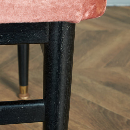 シンプルなフレームにブラックがアクセントになったシックなデザインが印象的。英国ヴィンテージの洗練された美しさと魅力を備えた一品です。ドレッシングデスクとの組み合わせやダイニングの補助椅子、オットマン等、多目的にお使いいただけます。
