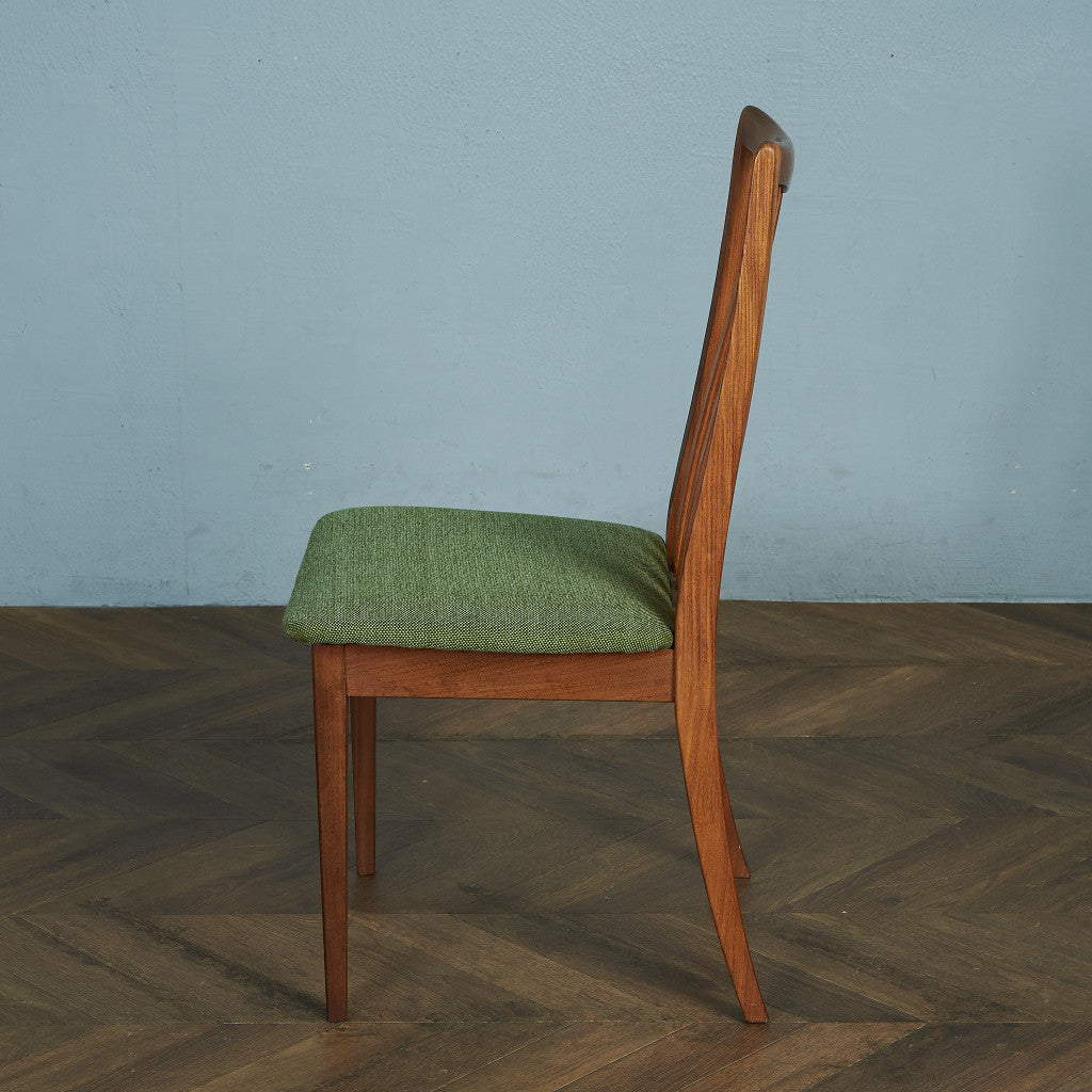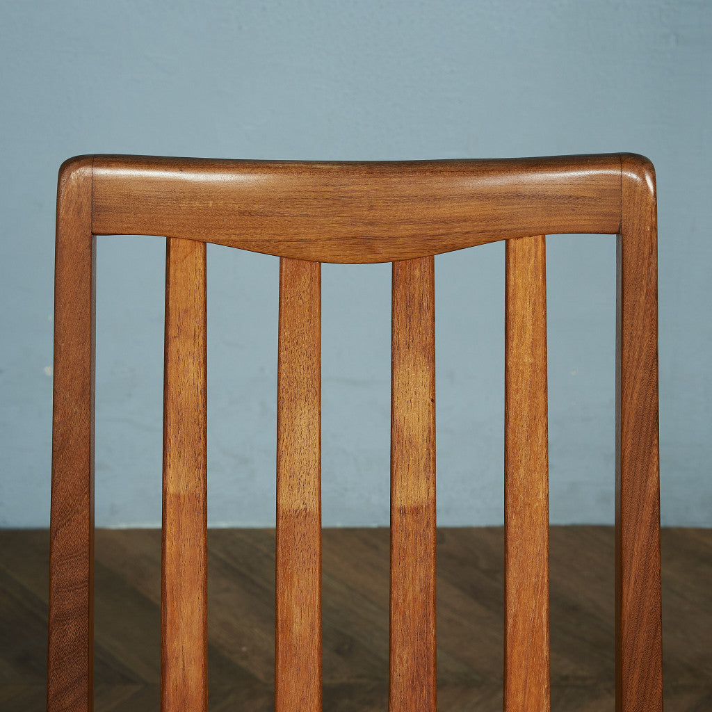 Leslie・G・ Dandy(レスリー・G・ダンディ)デザインのダイニングチェア。G-PLANを代表するチェアのひとつで、当時大ヒットした作品です。1972年の発売から1987年までの間、毎週2,000脚も製造されていました。スラット部分に明るい褐色のチーク材を使用、緩めのカーブが繊細さを感じさせつつも、シャープな印象になりすぎない、特別な魅力のあるチェアです。