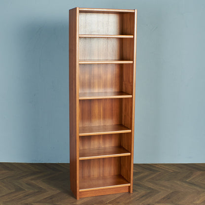 チーク材を使用した、オープン仕様のブックシェルフ。シンプルながらも細部に作り手のこだわりを感じる、北欧家具黄金期のヴィンテージファニチャーです。スリムなので使い勝手がよく、高さに充分なスペースがあるため収納力も豊富です。