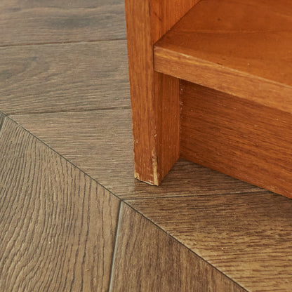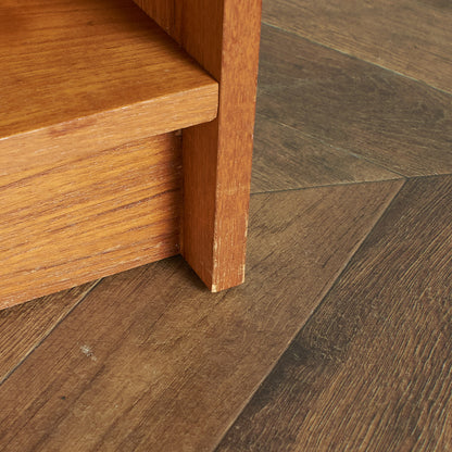 小さな文庫書籍や小物コレクションのディスプレイに最適なチーク材使用のブックシェルフ。現代の間取りでも使いやすいサイズ感とシンプルなデザインでどんな空間にも合わせやすいお品です。