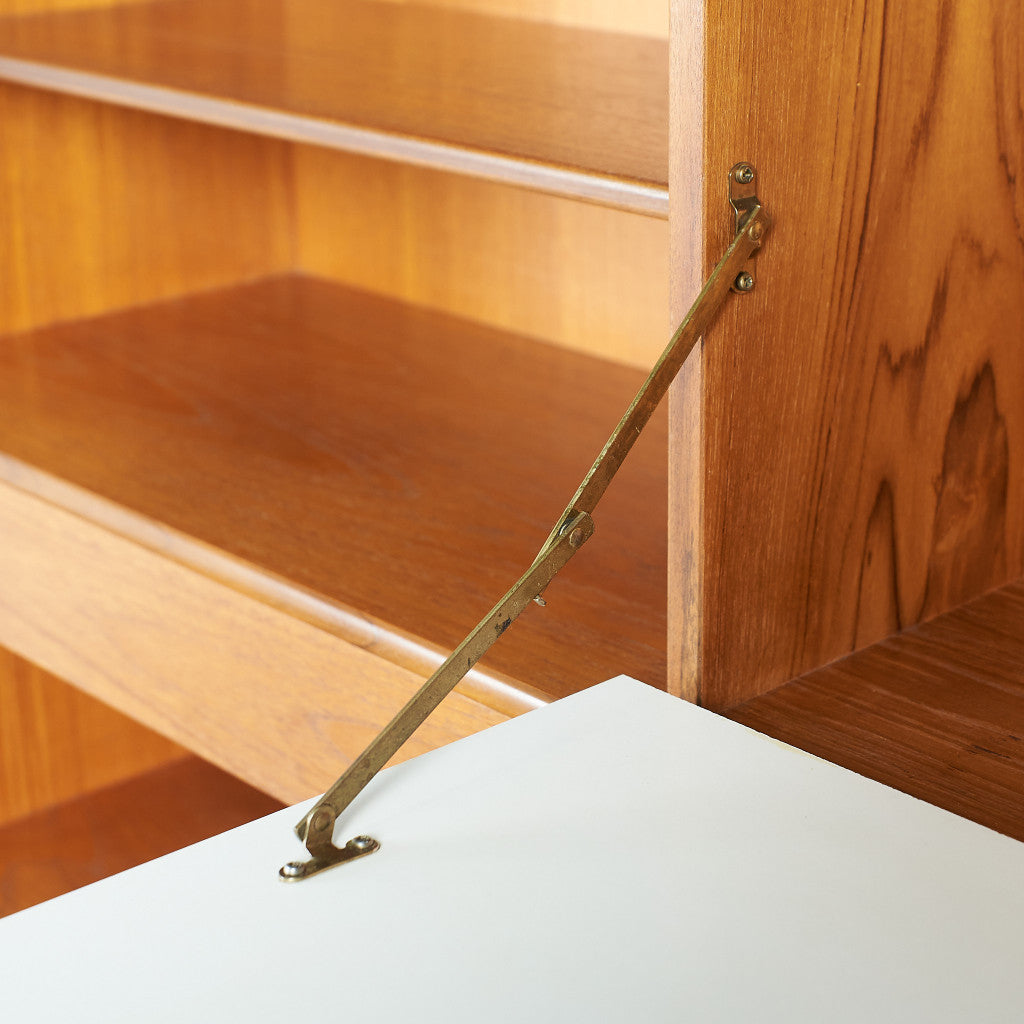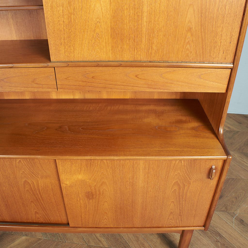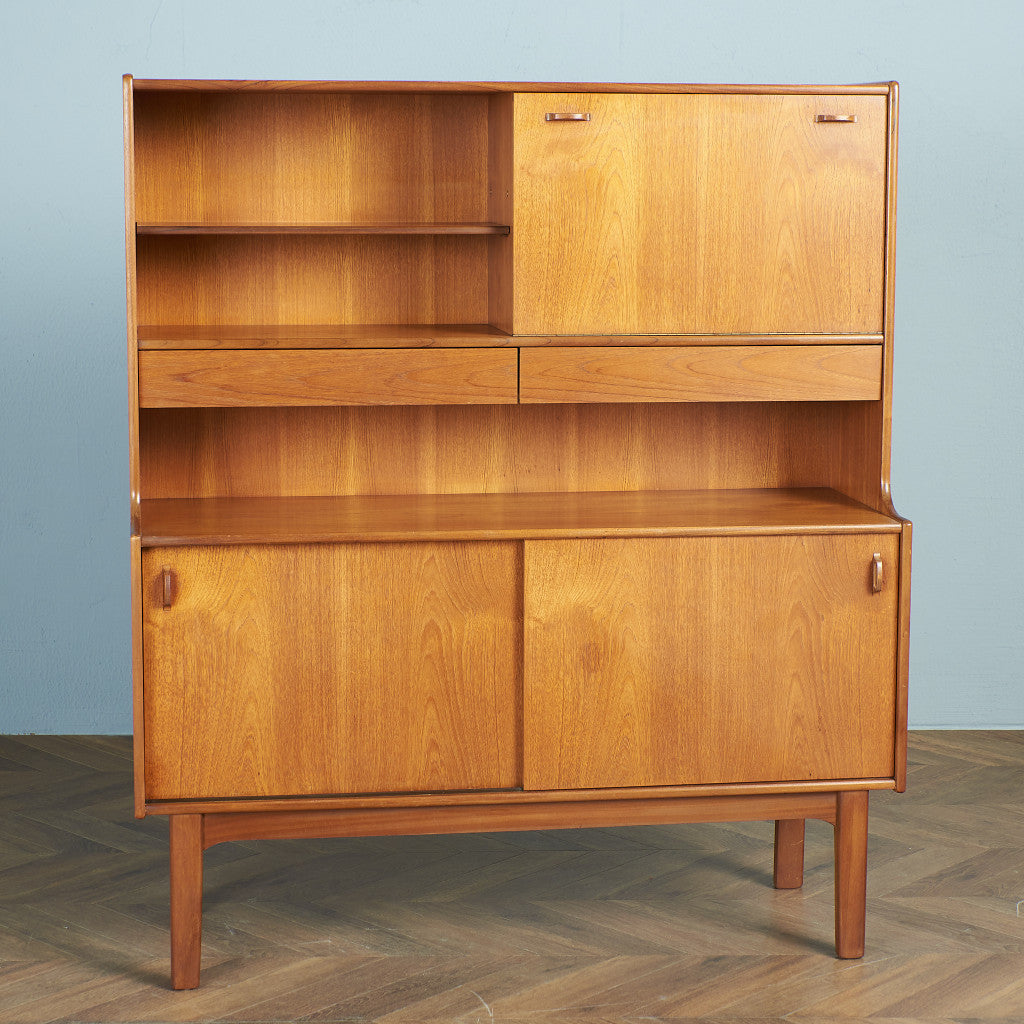 ヴィンテージならではの味わい深い質感と端正なシルエット。削り出し取手が上品なアクセントを添えています。G-PLANやMcIntoshと比べて流通が少ないことも、コレクター心をくすぐります。今では貴重となった良質なチーク材が印象的。実用的でありながら美しく、作り手のこだわりを感じさせる英国ミッドセンチュリー家具黄金期のヴィンテージファニチャーです。