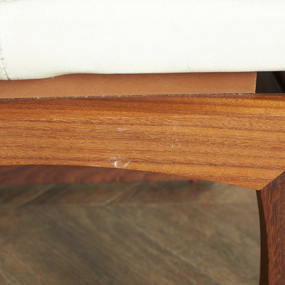 Quadrilleシリーズの、特徴的な脚の意匠を備えたスツール、シンプルながらも印象深いデザインです。定番のドレッシングデスクとの組み合わせやダイニングの補助椅子、オットマン等、多目的に使いやすいデザインでヴィンテージ市場でも非常に人気が高いため入手が困難になりつつ有ります。