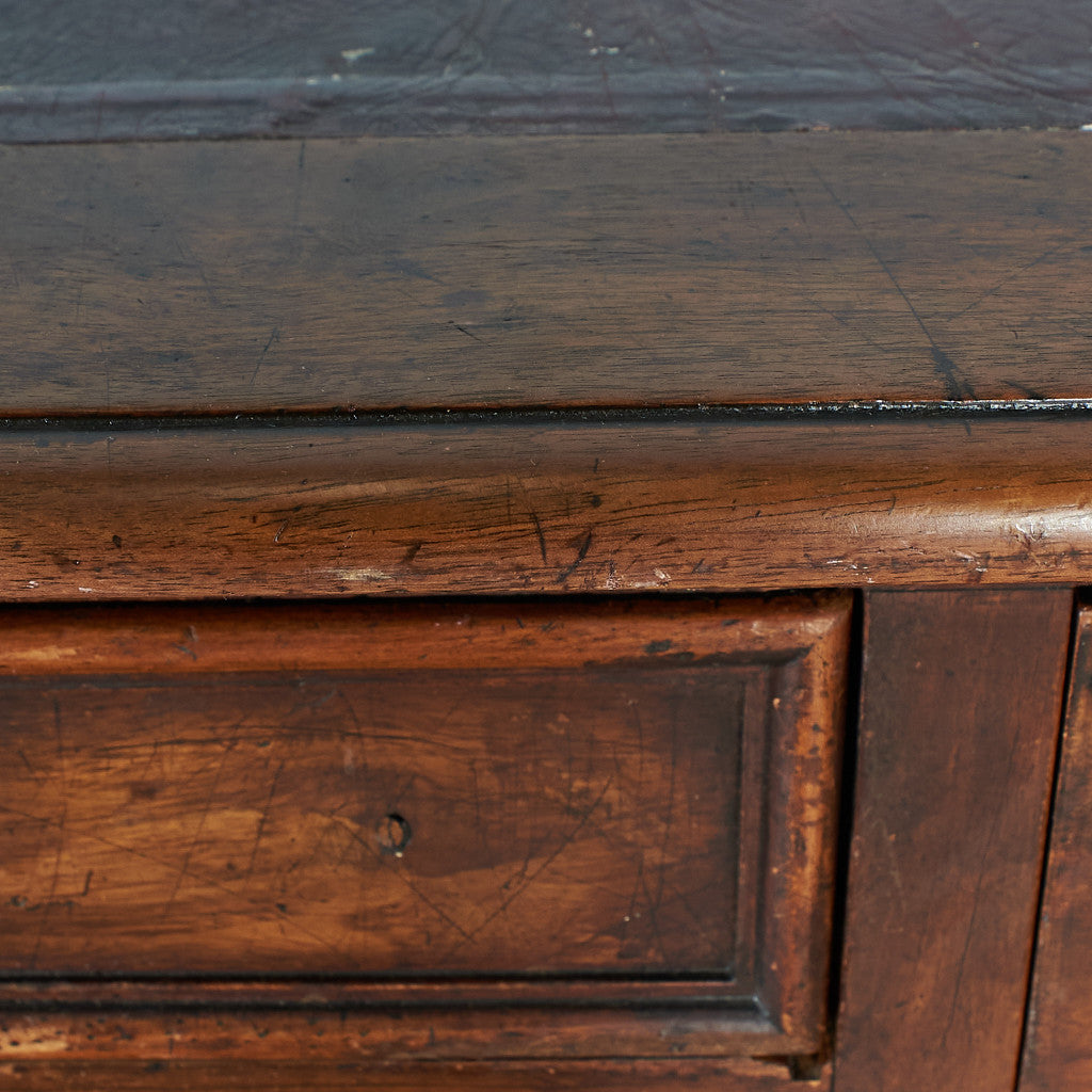 深みのあるウォールナット材を使用し、美しいディテールを随所に備えたデスク。古き良き西欧の伝統を感じさせるクラシカルなデザイン、程よく古びた風合いがアンティークならではの素朴で優しい雰囲気を演出します。ヨーロピアンアンティークの空間づくりやショップのディスプレイにもおすすめです。