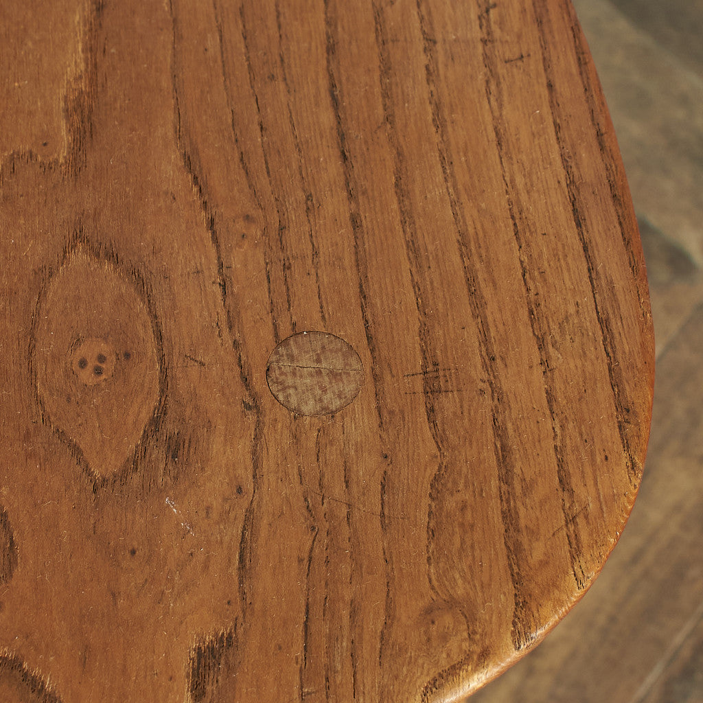 アーコール社のチェアの中でも希少性の高い一品。ラティスドチェアとはしなやかに組まれたスピンドルのフォルムが、庭のラティスフェンスに似ていることに因みます。この椅子にはクロスバックチェア、キャンドルメイカーズチェアの別称もあります。また、脚の貫部分までクロスになっていて、優雅なシルエットが際立っています。8本のスポークが座板に差し込まれていますが、その1本ずつの角度も深さも異なっているため、大変難しい作業となりますが、熟達の鮮やかな手仕事が伺えます。笠木部分にはブナの木を弓状に曲げるウィンザーボウーの技術が息づき、エルム材を使った座面も緩やかな座刳りが施されるなど、随所に職人の丁寧な技巧が凝縮した一脚です。