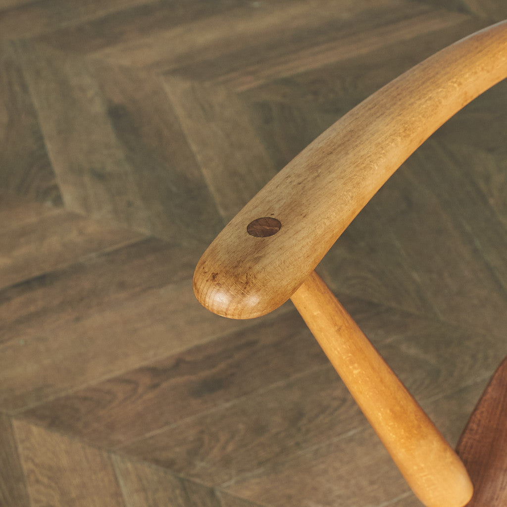 伝統的なウィンザーボウバックチェアをリデザインしたシャープな背面のシルエットが印象的なクエーカーチェア。曲げ木加工による美しい一本の曲線が形作る独特のフォルム。背もたれが高く、ゆったりと寛げる座り心地のよい設計で、アーコールの中でもロングセラーのデザインです。復刻品とヴィンテージ品で背もたれのスポークの数が異なり現行品は6本、ヴィンテージ品は5本となります。うねったような木目が印象的なエルム材座面仕様はヴィンテージ品のみです。