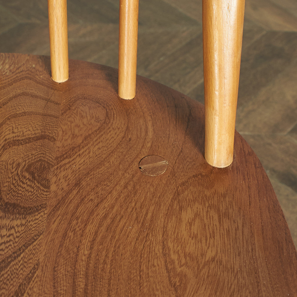 伝統的なウィンザーボウバックチェアをリデザインしたシャープな背面のシルエットが印象的なクエーカーチェア。曲げ木加工による美しい一本の曲線が形作る独特のフォルム。背もたれが高く、ゆったりと寛げる座り心地のよい設計で、アーコールの中でもロングセラーのデザインです。復刻品とヴィンテージ品で背もたれのスポークの数が異なり現行品は6本、ヴィンテージ品は5本となります。うねったような木目が印象的なエルム材座面仕様はヴィンテージ品のみです。