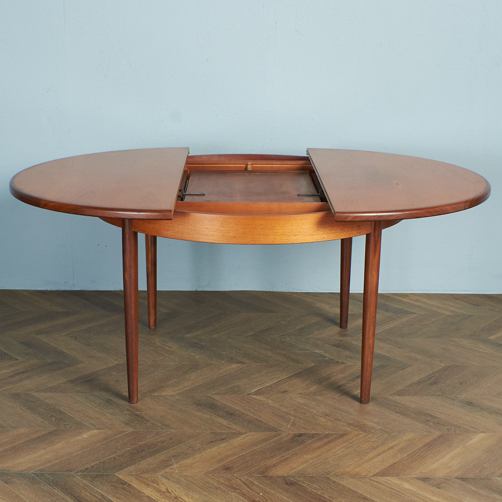 イギリスにおいてミッドセンチュリーを代表する G-PLAN(ジープラン) による、Victor Bramwell Wilkins(ビクター・ブラムウェル・ウィルキンス)デザイン、Fresco(フレスコ) エクステンション ラウンド ダイニングテーブルです。