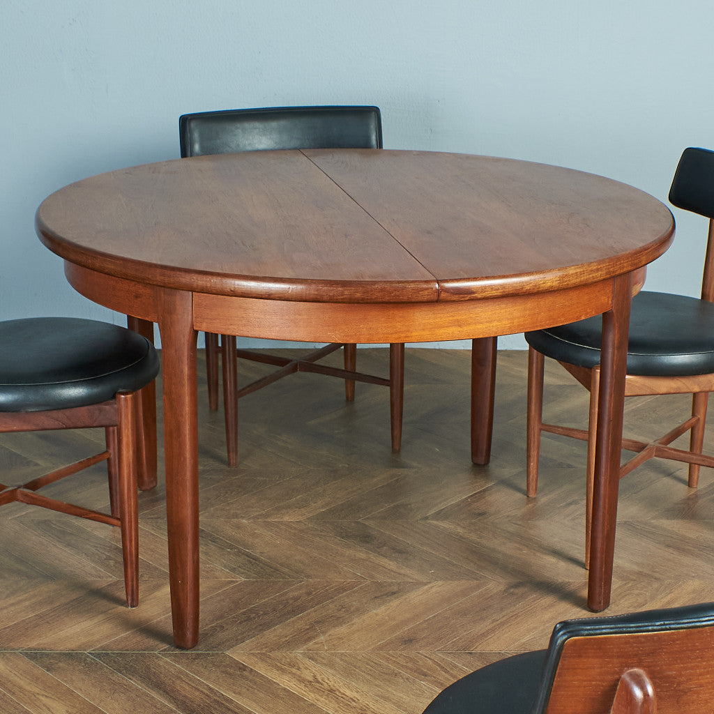 イギリスミッドセンチュリーを代表する家具ブランドの一つ Elliotts of Newbury(エリオッツ・オブ・ニューべリー) による、エクステンション ラウンドダイニングテーブルです。