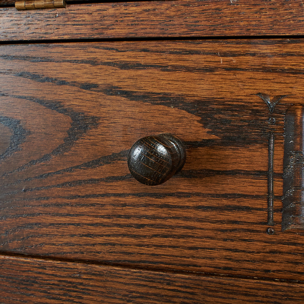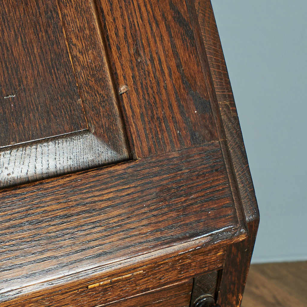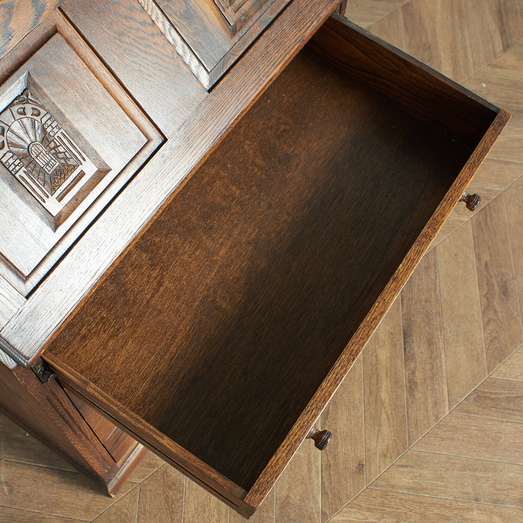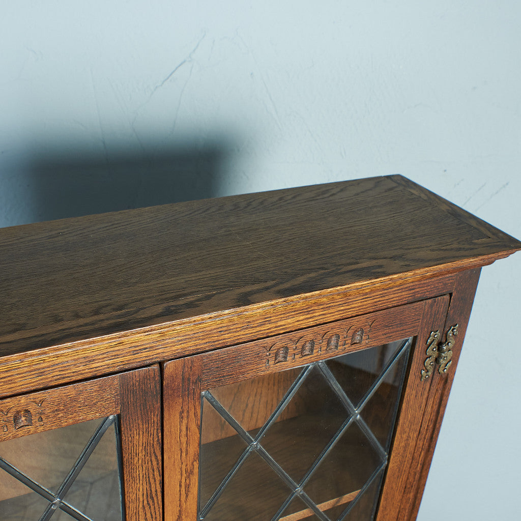 オーク材が使用されたブックビューロー。ガラス扉のフレームや取手など、シックなデザインが目を惹きます。オーク材の心地よい温もり、風合いが素朴で優しい雰囲気を演出します。