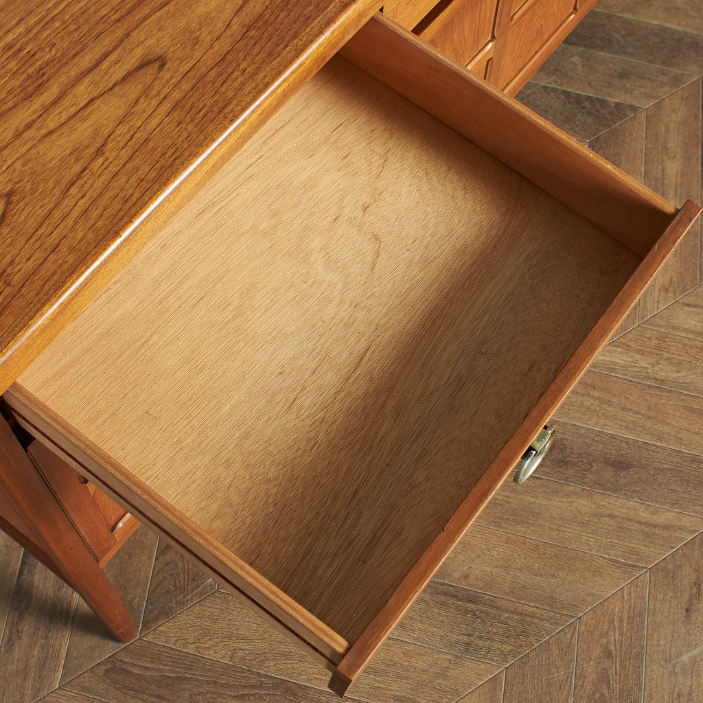 ネイサン社の創業は1916年、イギリス・ロンドンでロシア出身のバーネット・ネイサンが手作りの家具を製造したことに遡ります。1954年ニュー ヨークで開かれた家具展覧会においてイギリスを代表するデザインとして選ばれて一躍有名になり、チーク材の家具を本格的に生産。G-planシリーズで有名なエベネゼル・グーム社と並び、イギリスミッドセンチュリーを代表する家具メーカーへと発展しました。とくに「クラシックレンジ」シリーズは、時代を超越したデザインで優れた快適性と職人技が見事に融合。クラシックと北欧スタイルの折衷的な独自のデザインスタイルを生み出し、ジャコビアンドアスタイリングと美しいチーク材の組み合わせの自然な輝きがロンドンの都市生活者を虜にしました。
