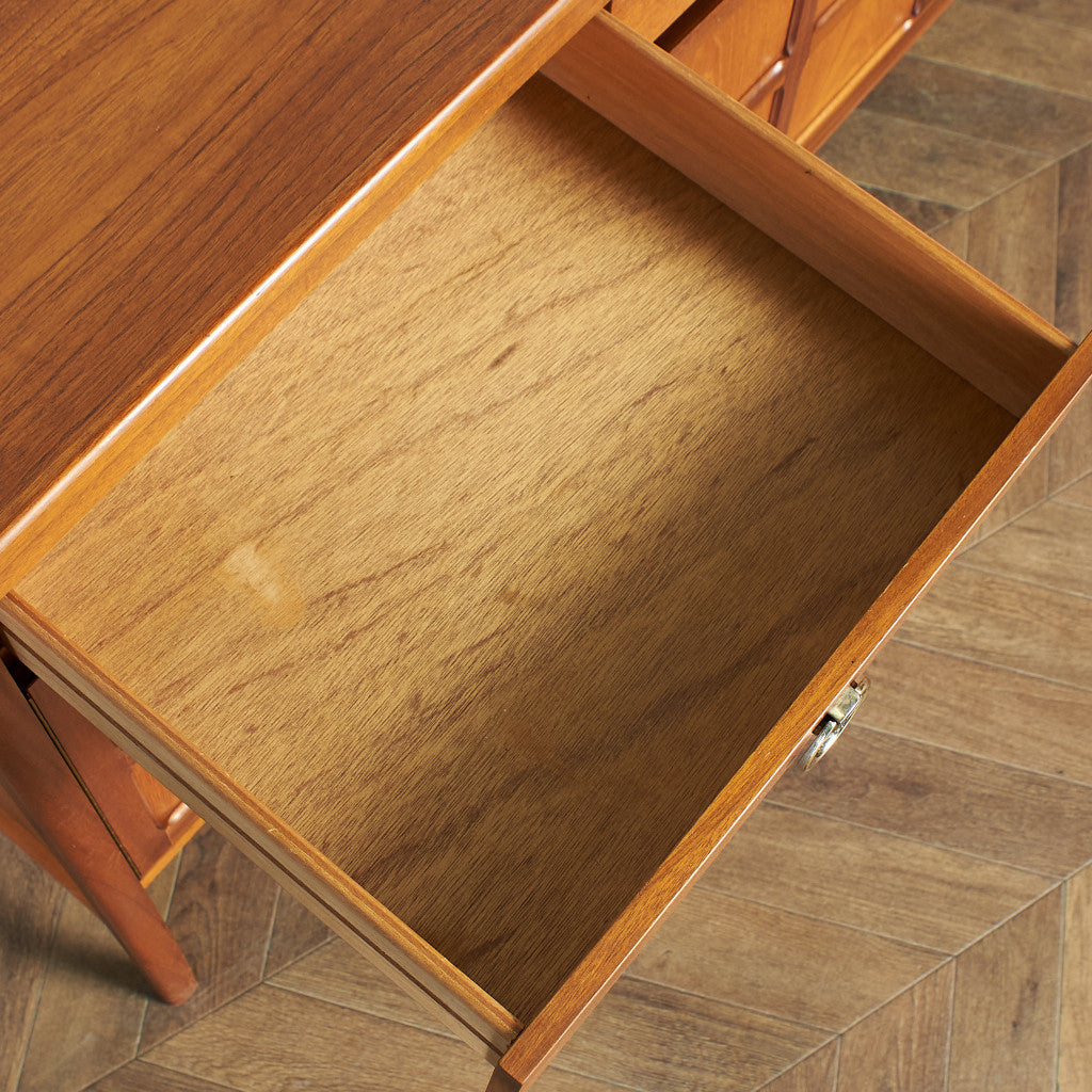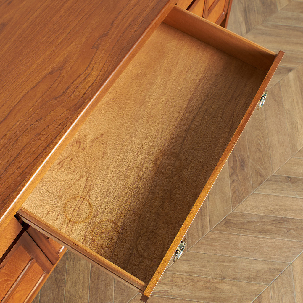 ネイサン社の創業は1916年、イギリス・ロンドンでロシア出身のバーネット・ネイサンが手作りの家具を製造したことに遡ります。1954年ニュー ヨークで開かれた家具展覧会においてイギリスを代表するデザインとして選ばれて一躍有名になり、チーク材の家具を本格的に生産。G-planシリーズで有名なエベネゼル・グーム社と並び、イギリスミッドセンチュリーを代表する家具メーカーへと発展しました。とくに「クラシックレンジ」シリーズは、時代を超越したデザインで優れた快適性と職人技が見事に融合。クラシックと北欧スタイルの折衷的な独自のデザインスタイルを生み出し、ジャコビアンドアスタイリングと美しいチーク材の組み合わせの自然な輝きがロンドンの都市生活者を虜にしました。