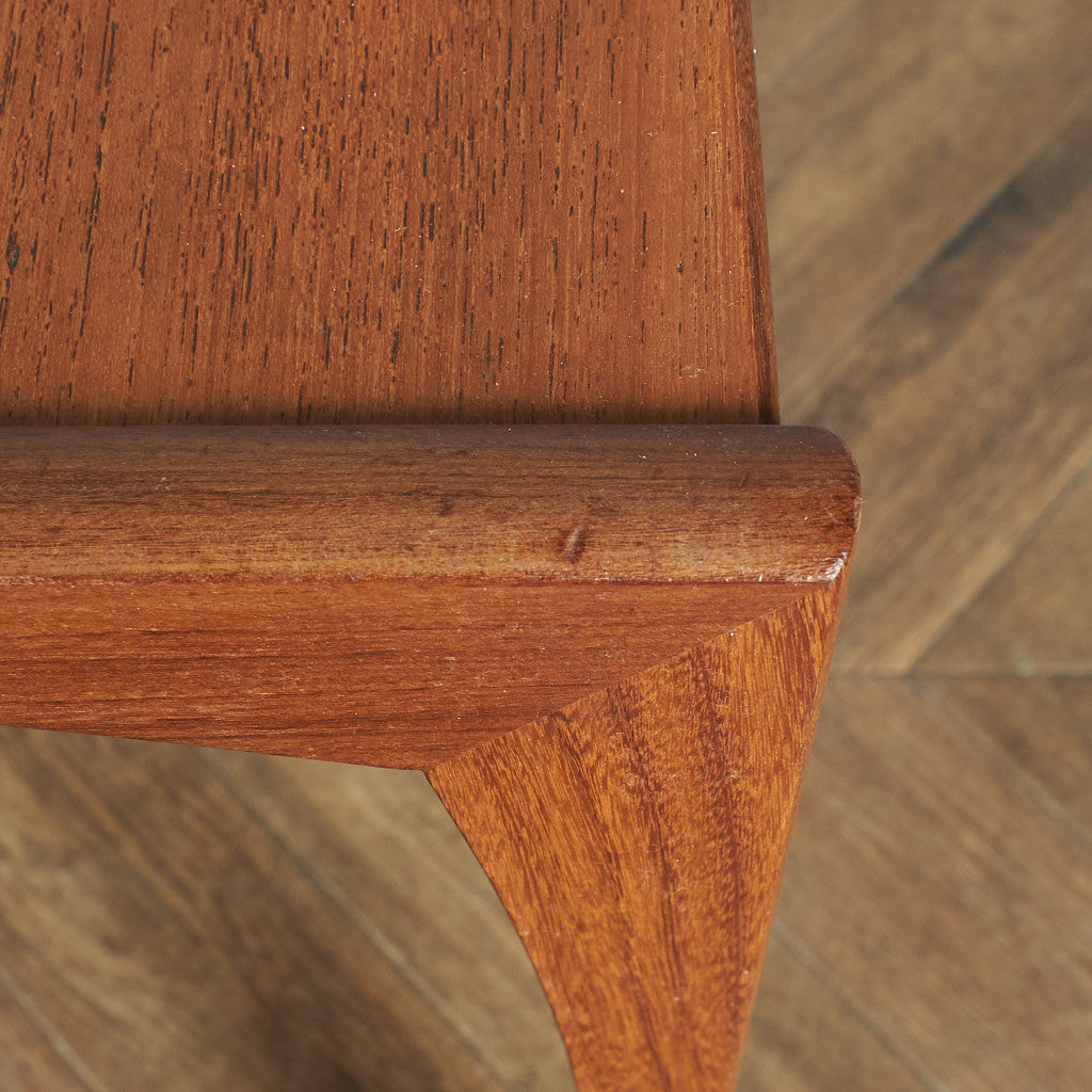 フランスのスクエア(四角)になって踊る古典舞踊、Quadrilleの名前を冠する1965年発表のG-PLAN Quadrilleシリーズ。Frescoシリーズと同じく60年代のデンマークデザインを源泉にもち、美しい褐色のチーク材を使用。四方を面取りされた樽型取手、内側に緩やかな弧を描き外形を四角に組まれた美しい形状の脚が特徴です。
