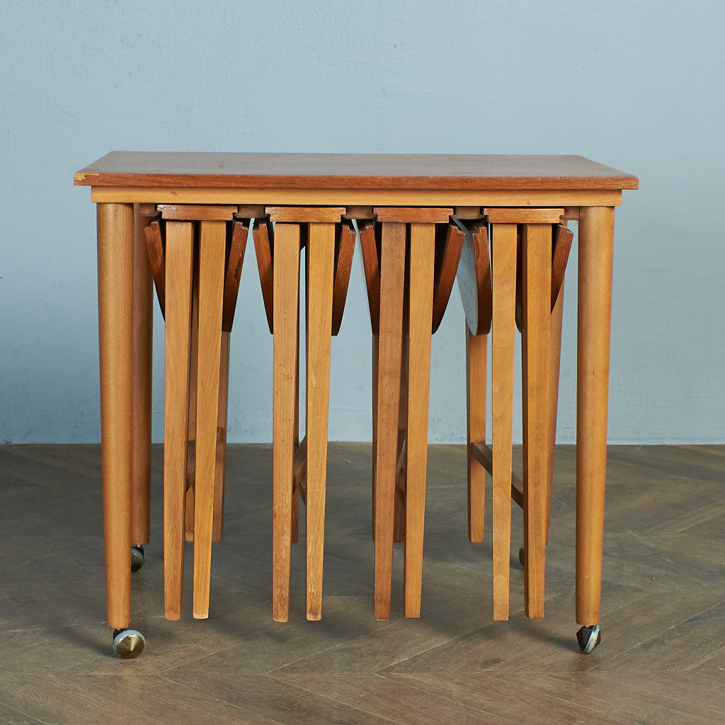 当時活躍したデンマーク人デザイナー Poul Hundevad(ポール・ハンデバッド)デザイン、旧チェコスロバキアのNovy Domov社により発表した、ヴィンテージネストテーブルです。