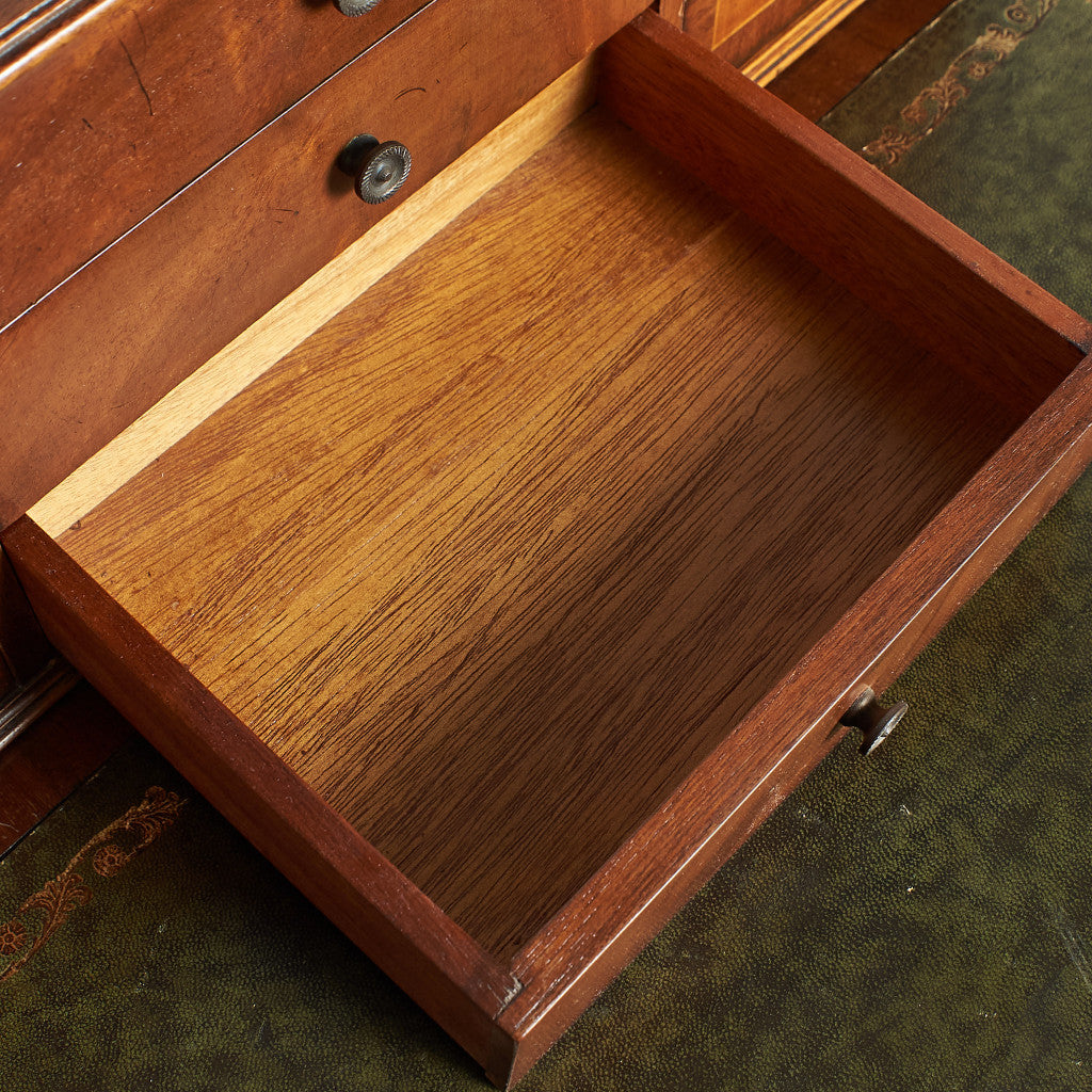 深みのあるウォールナット材を使用し、美しいディテールを随所に備えたデスク。実用性の高さと使いやすいスケール感に、洗練された佇まいが印象的なお品です。