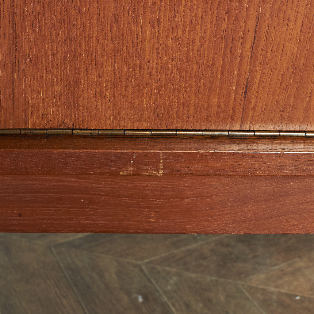 上質なチーク材を用いたデンマークスタイルのデザインに、独自のアレンジが施された個性的なサイドボード。収納の容量も抜群でリビングの顔として申し分のない機能性と存在感です。