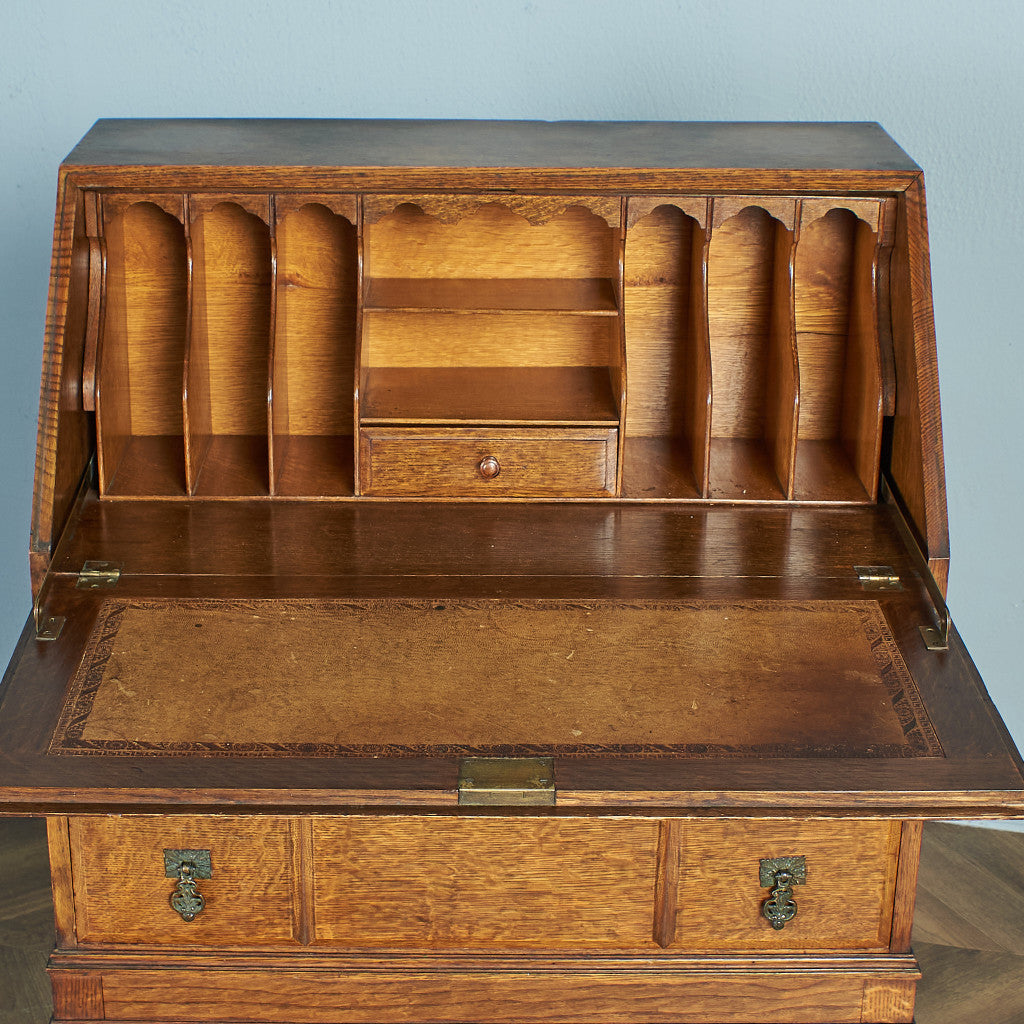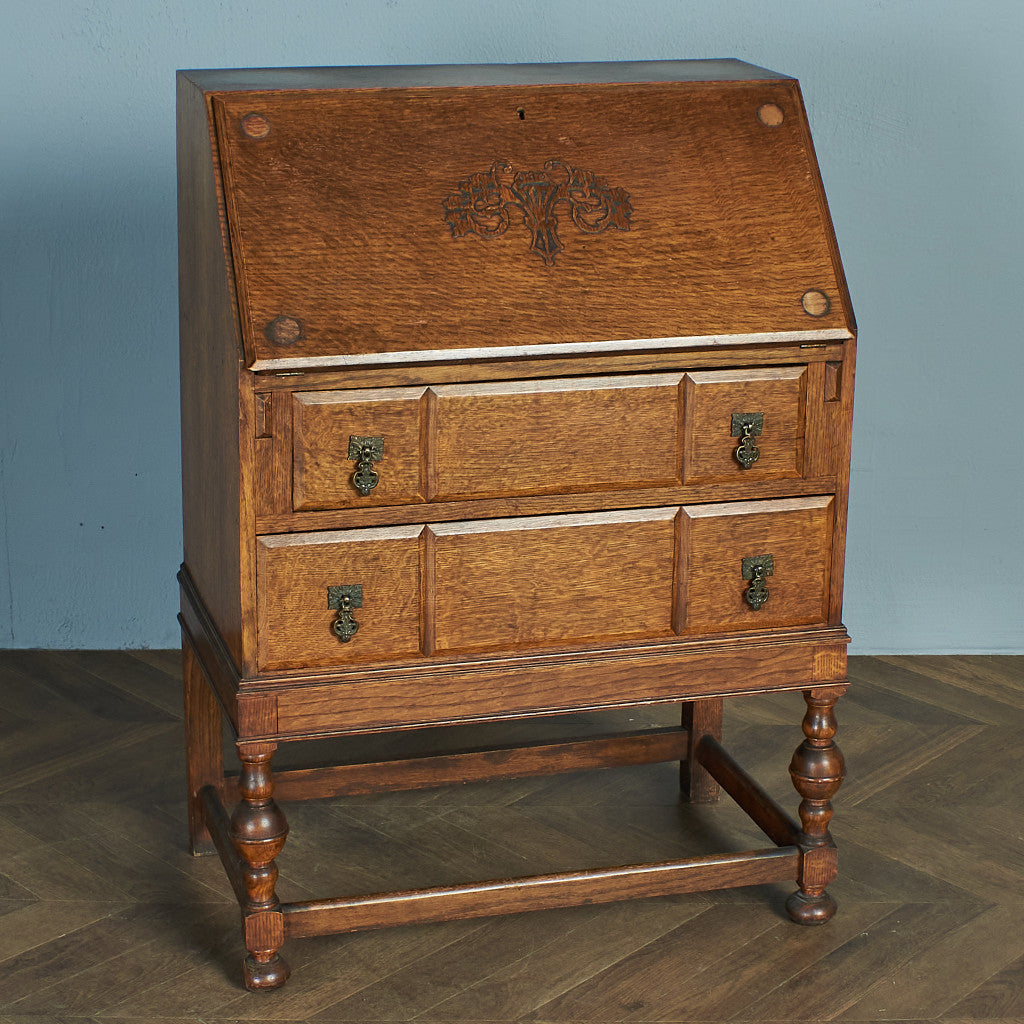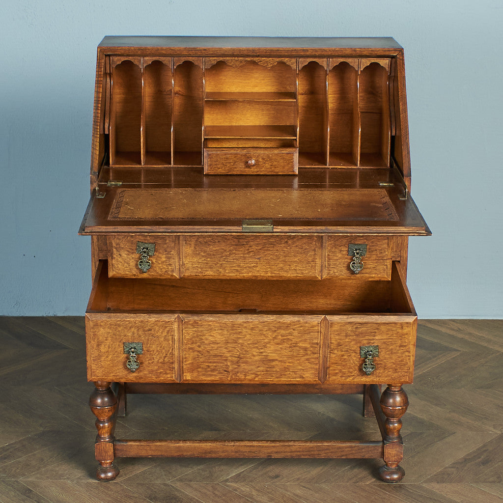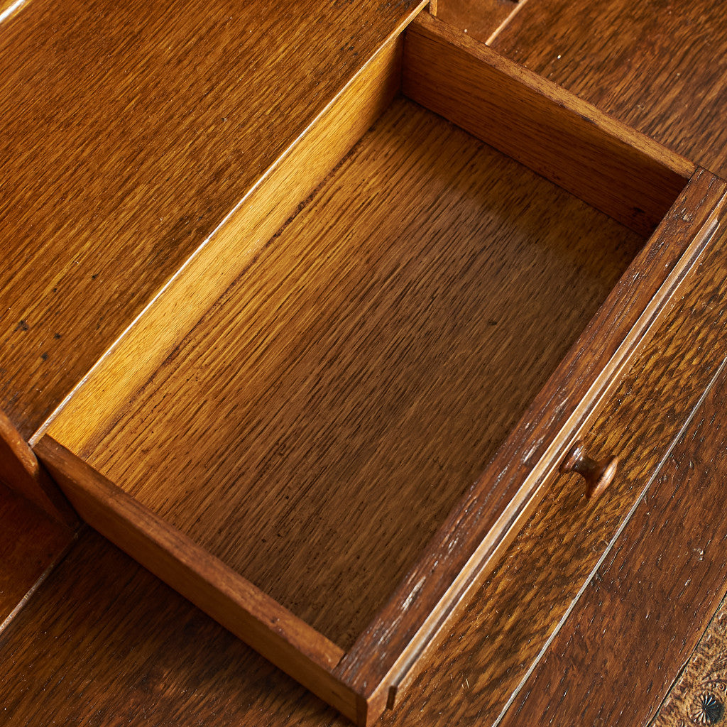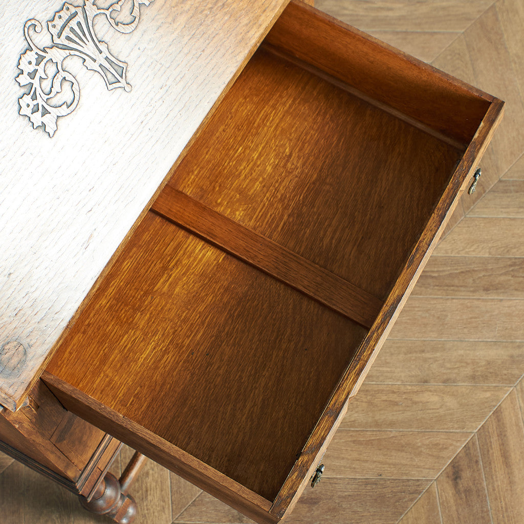 良質なオーク材を使用し、随所に美しいディテールを備えたライティングビューロー。古き良き西欧の伝統を感じさせるクラシカルなデザイン、程よく古びた風合いが素朴で優しい雰囲気を演出します。