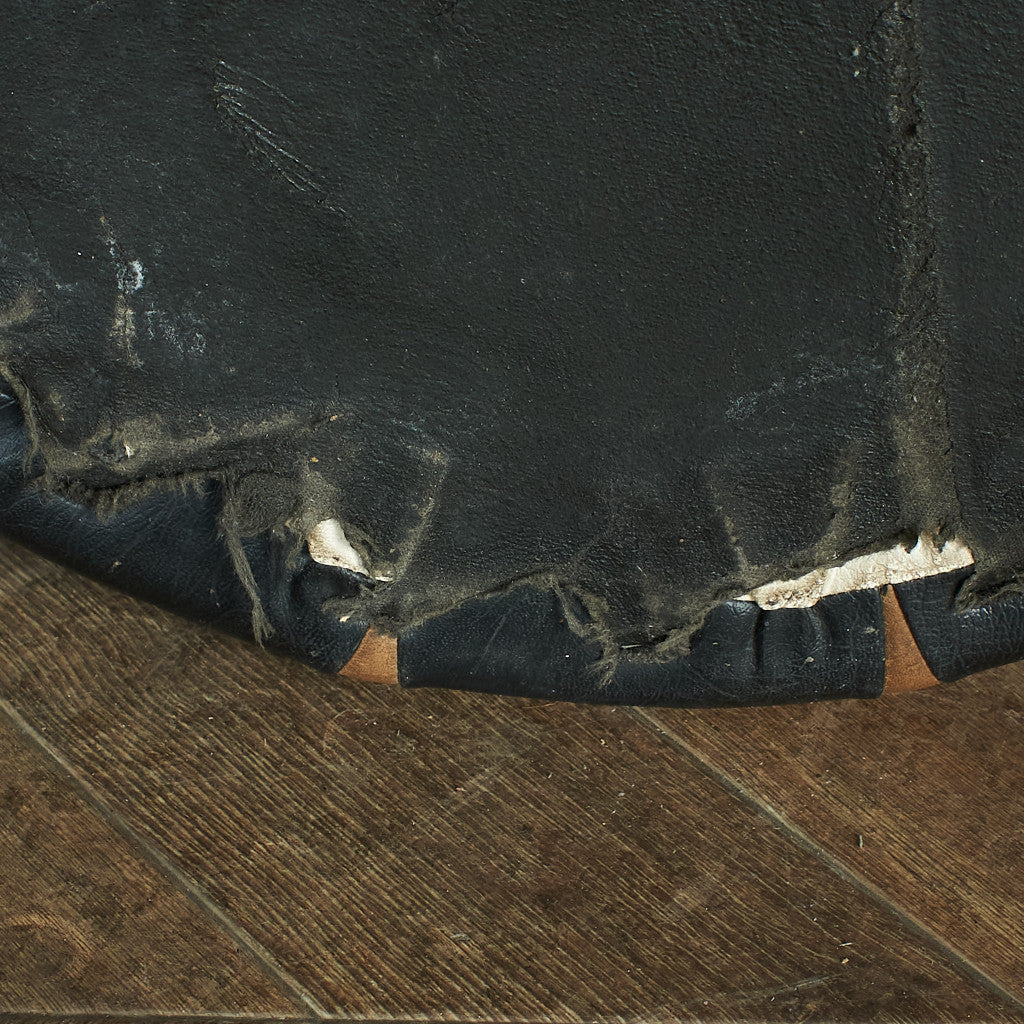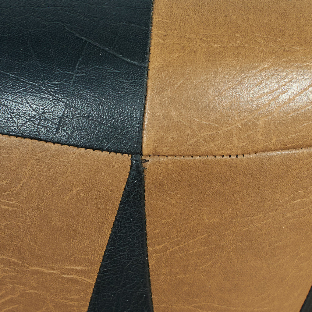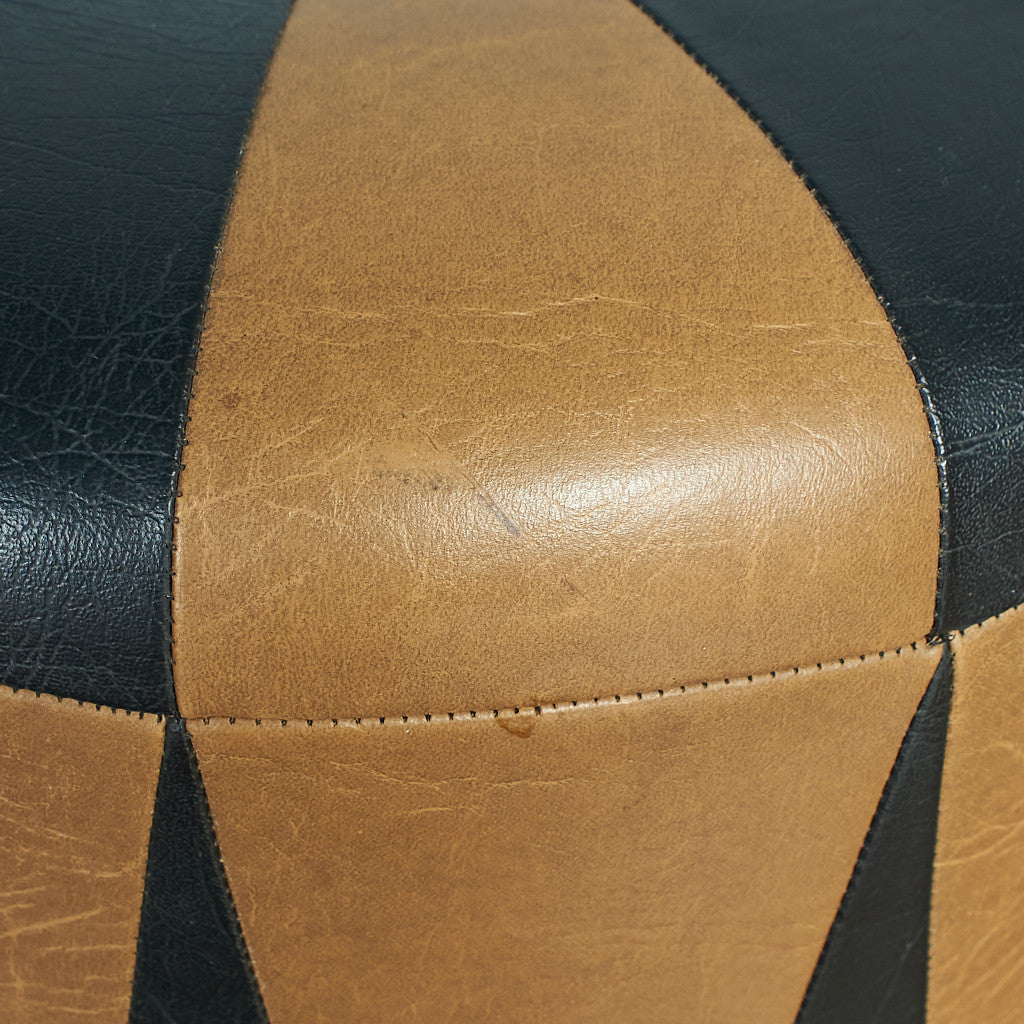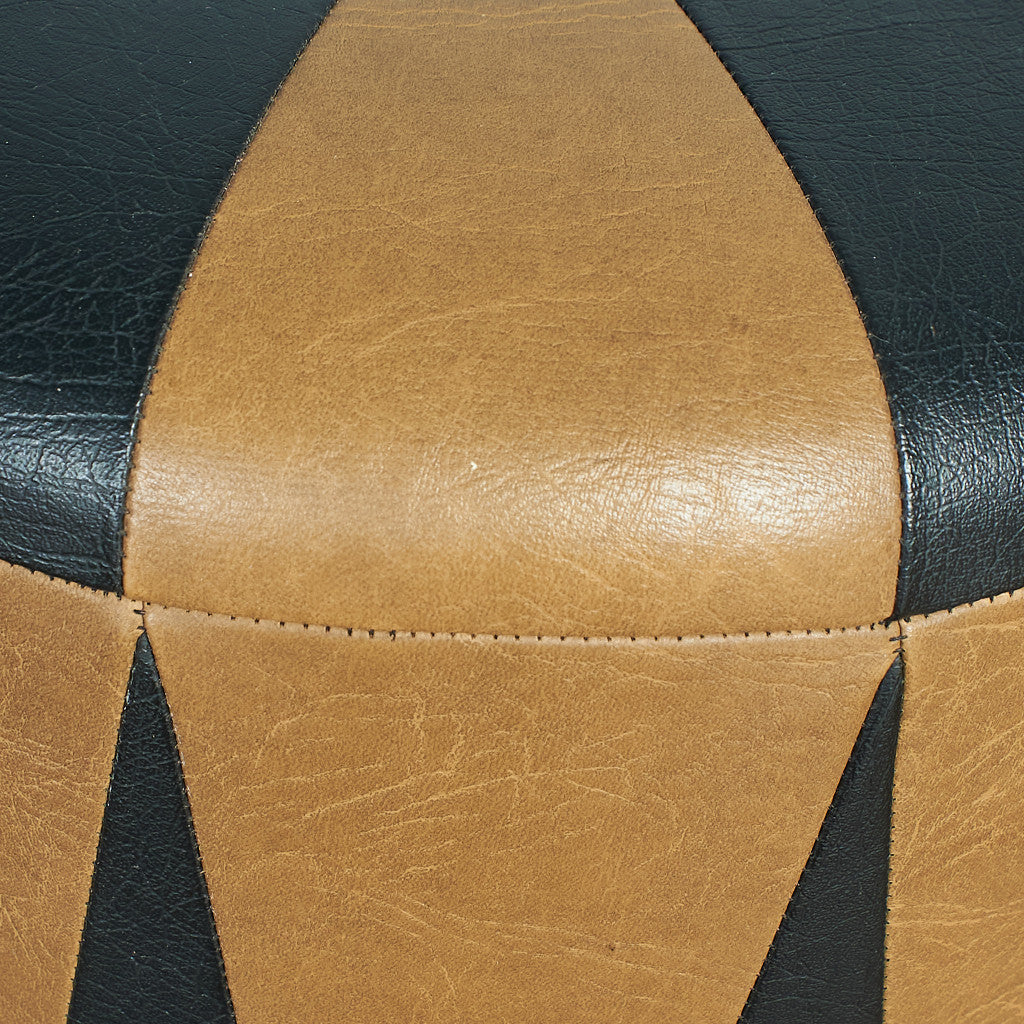 シンプルながらもパッチワークレザーがアクセントを添えるスツール。ゆったりとした時間を過ごすのはもちろん、部屋のインテリアコーディネートのポイントとして活躍します。