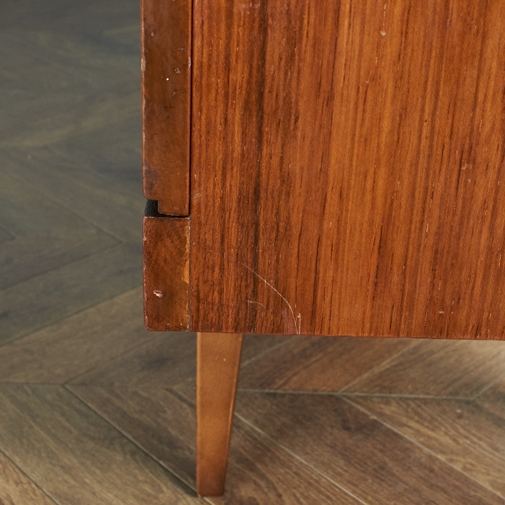 Beautility社はG-PLAN、McIntoshと並びイギリスのミッドセンチュリーを代表する、老舗の家具メーカー。1896年、サイモン・サドフスキーが"Sadovsky" Cabinet Makersを設立。その後、1929年に「Beautility Furniture」に改名しました。バラエティに富んだ個性的な取っ手や、すっきりとしたスタイリッシュな脚のデザインが特徴です。