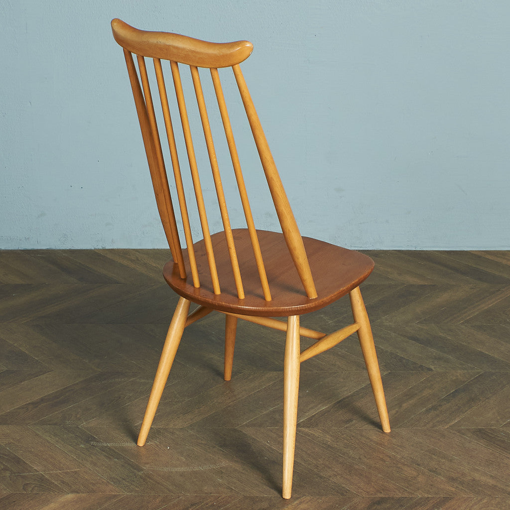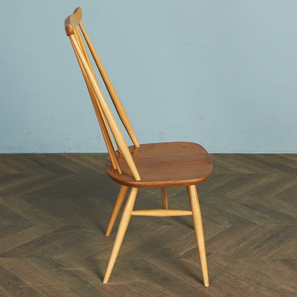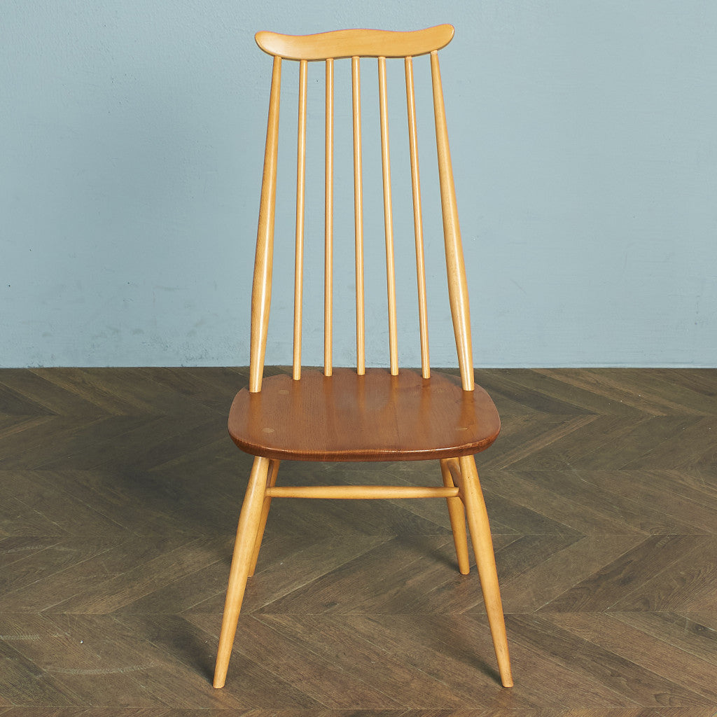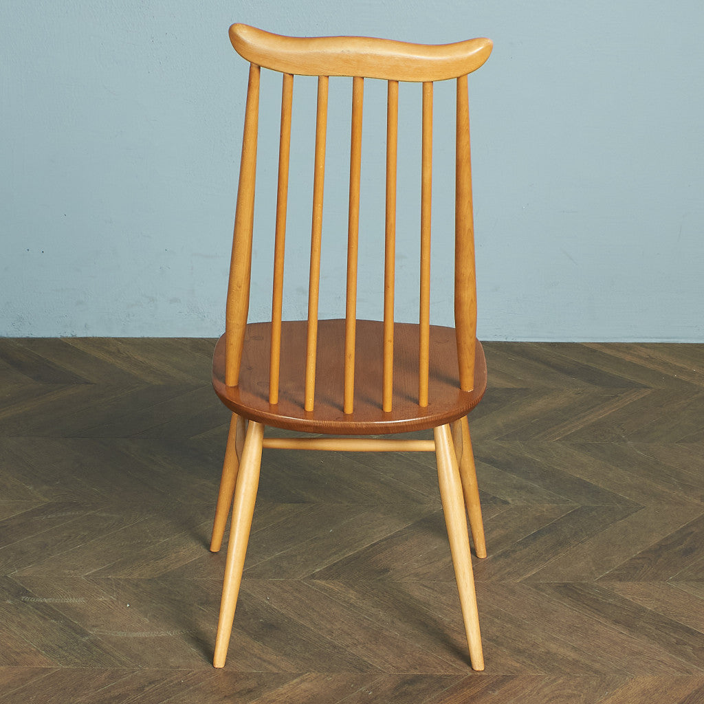 金細工師という名を持つこのイスは、アーコール社の椅子の中でも発表当時から一番人気のモデル。スタンダードなコームバックのウィンザーチェアをモチーフにしながらも、座り心地の良いロングスティックの背もたれや広めの座面、カーブを描く飾り木などが特徴です。実用性と程よい装飾性、個性を備えたデザインアレンジが施されています。