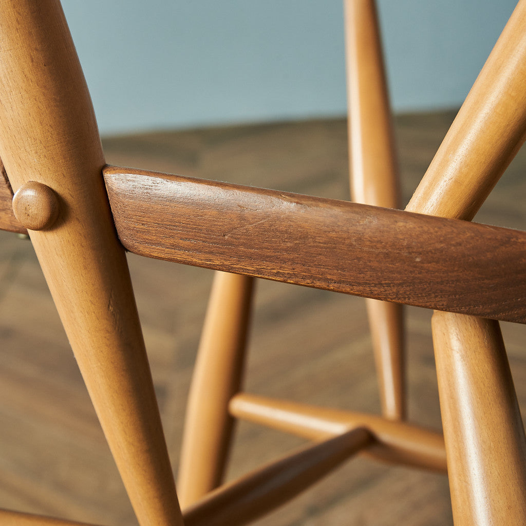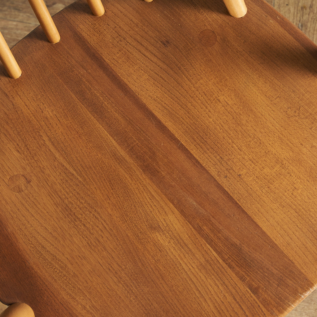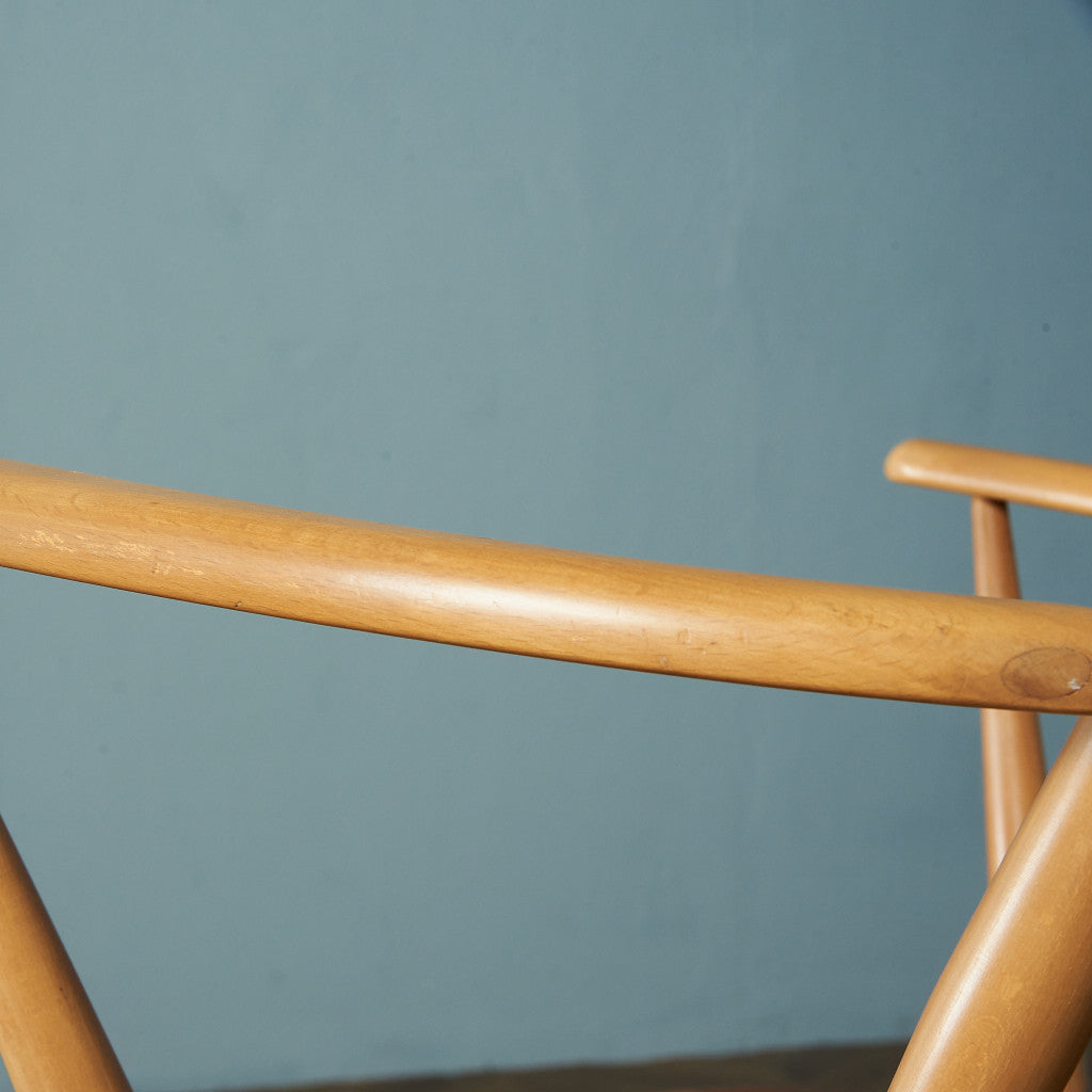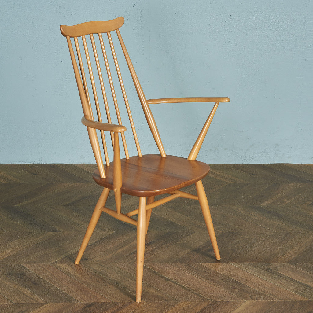 金細工師という名を持つこのイスは、アーコール社の椅子の中でも発表当時から一番人気のモデル。一番スタンダードなコームバックのウィンザーチェアをモチーフにしながらも座り心地の良いロングスティックの背もたれや広めの座面、カーブを描く飾り木等、実用性と程よい装飾性、個性を備えたデザインアレンジが施されています。