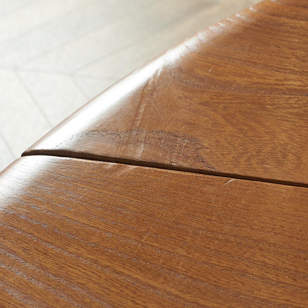 ウィングの部分を広げると楕円のテーブルトップになり、たたむと長方形になります。片側だけたたむ事もできます。パーティーなどでお客様が見えたりする時には広げて、普段お使いの際にはコンパクトにたたんで使用するなど、シチュエーションで使い分ける事ができるテーブルです。現在でも人気のあるこのテーブルは、2017年に復刻版が発売されました。折りたたみの天板を支える支柱がアルミに変更されています。