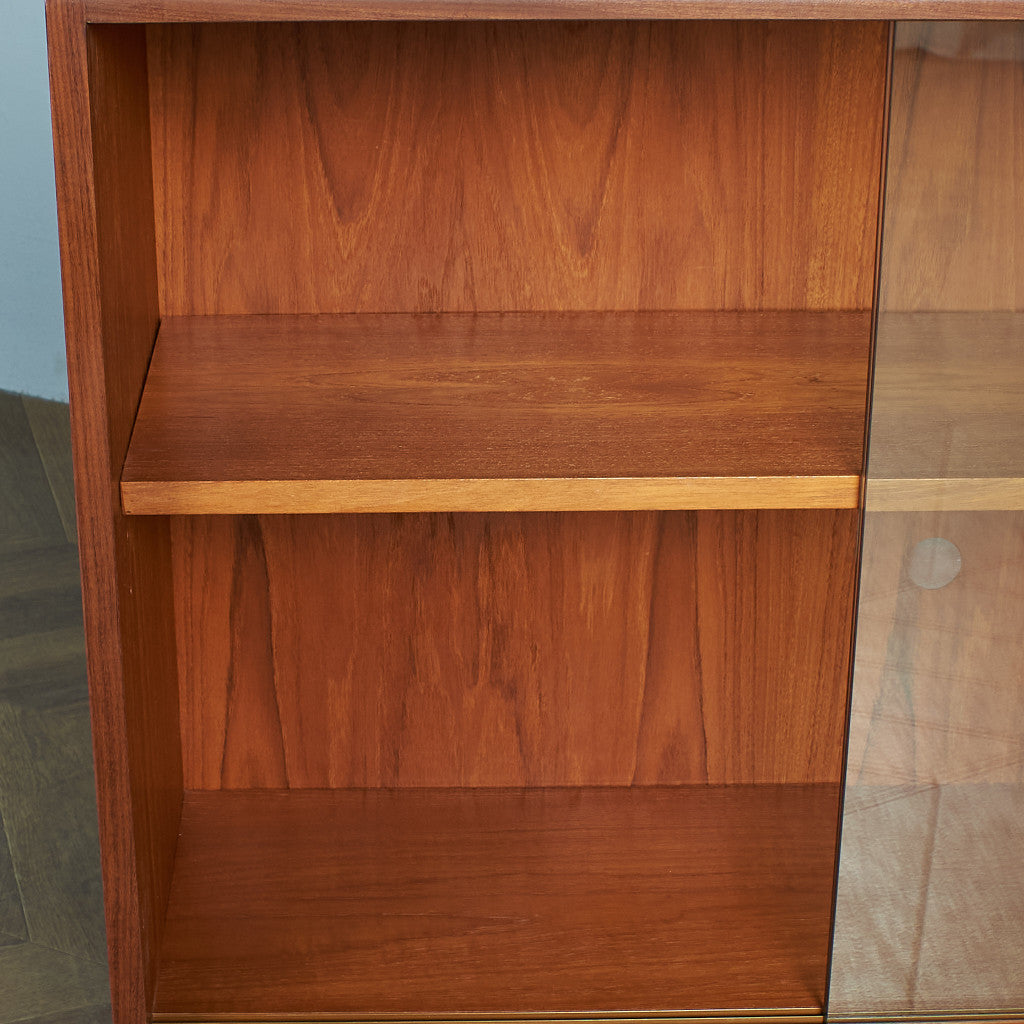 シンプルでスタイリッシュなデザインが魅力的なG-PLANのガラスブックケース。ヘアピンレッグと呼ばれる鉄製の脚でカスタマイズされ、より現代的でインダストリアルな雰囲気に生まれ変わっています。小さな文庫書籍や食器、コレクションなど見せる収納に最適な一品です。実用的でありながらも作り手のこだわりを感じさせる、北欧の年代物とも相性の良いヴィンテージファニチャーです。