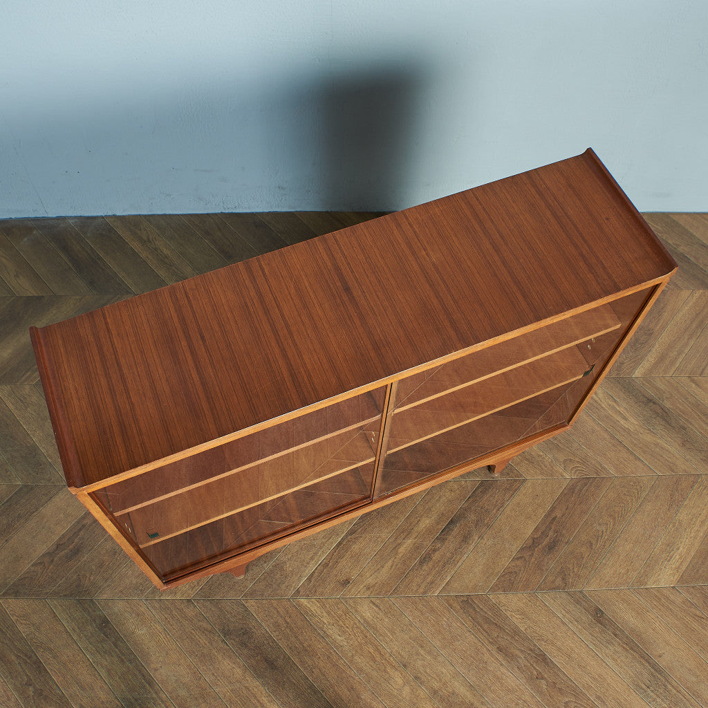 イギリスミッドセンチュリー期を代表するインテリアメーカーのひとつ meredew(メレデュー) による、ヴィンテージ 薄型ディスプレイキャビネットです。
