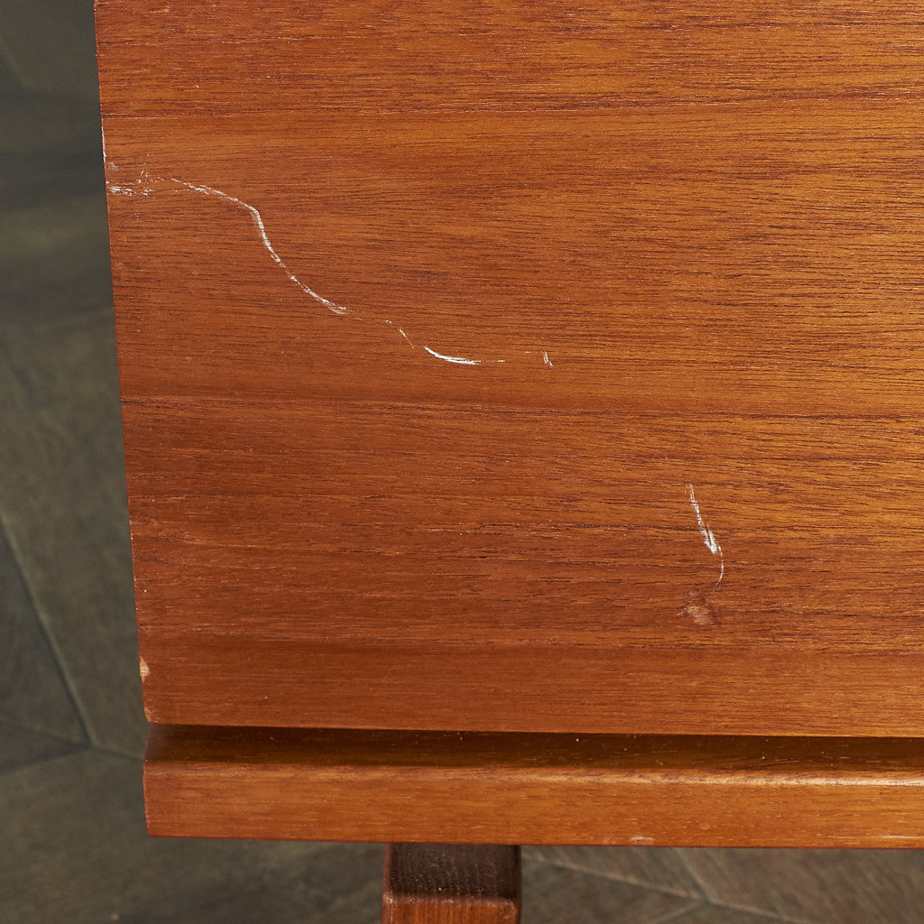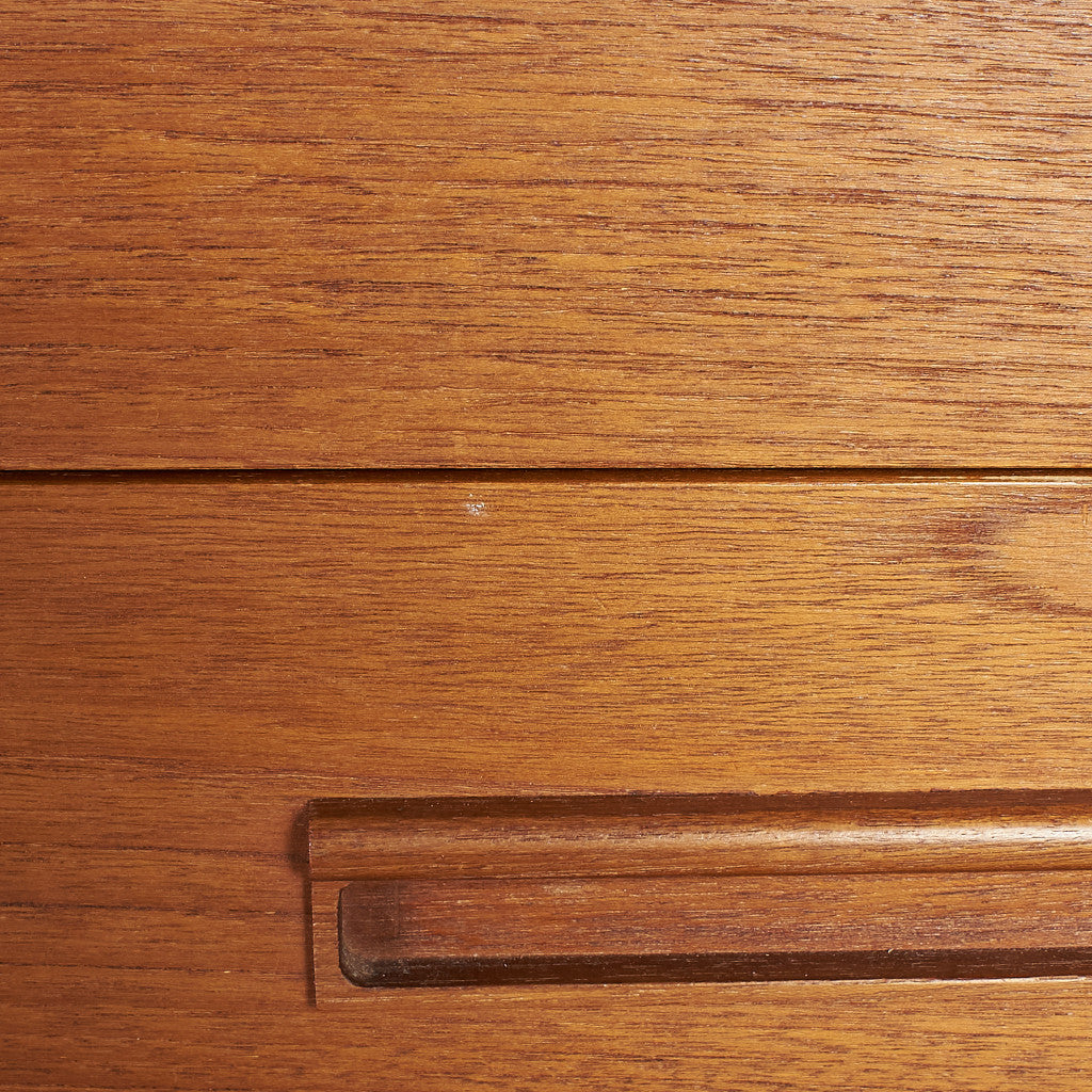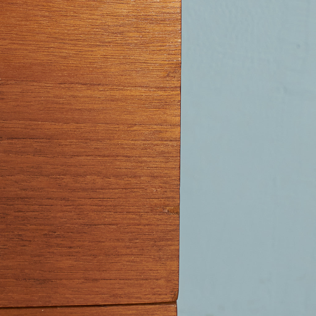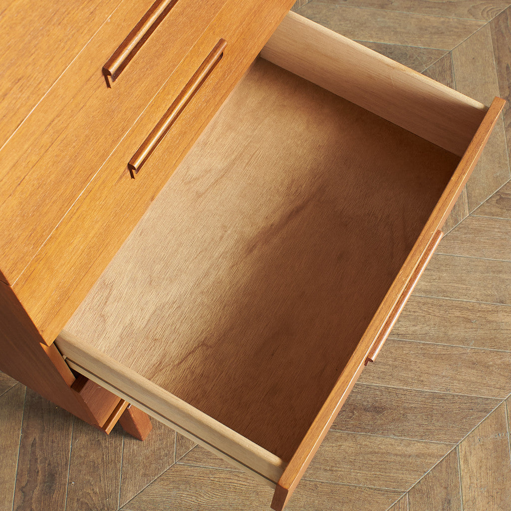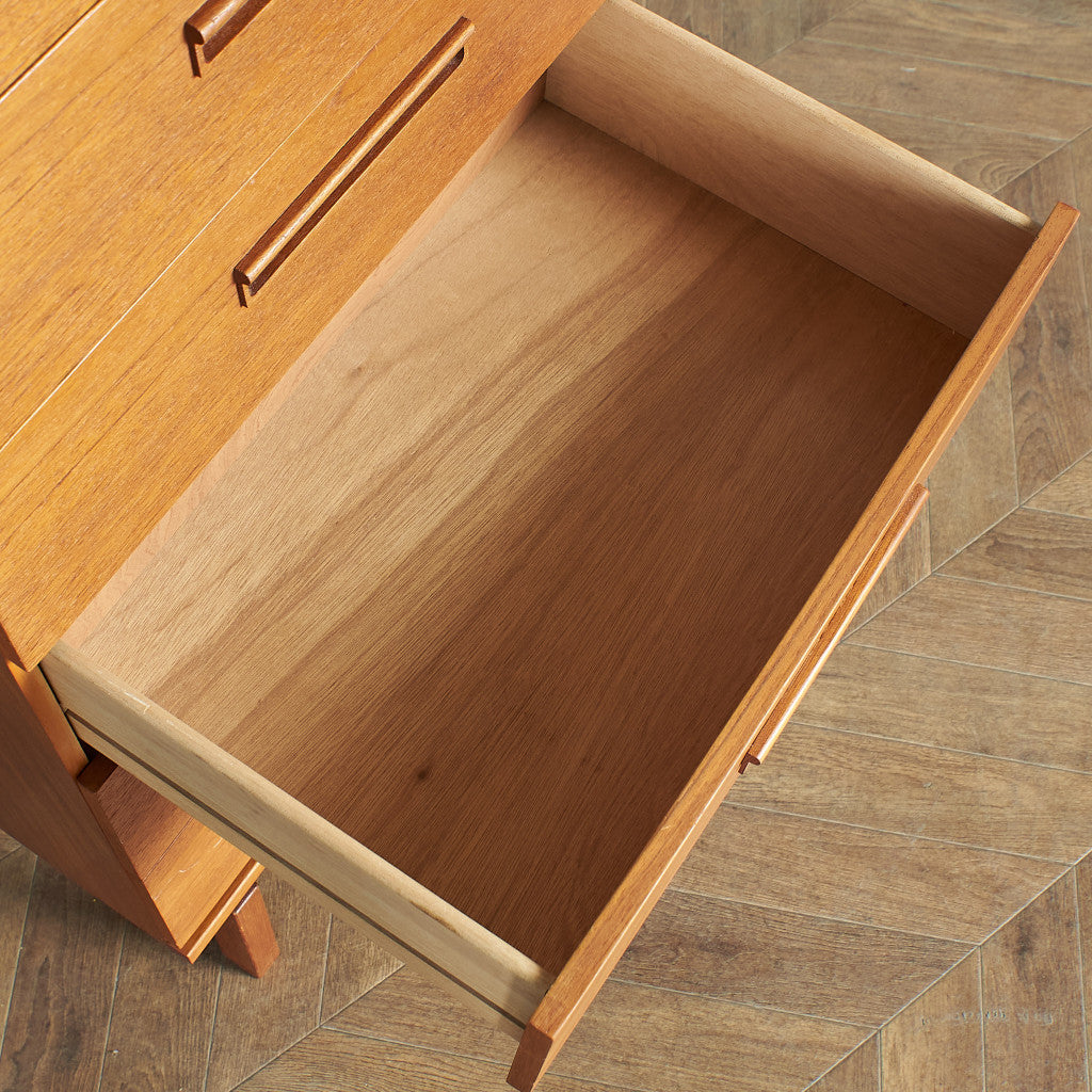 今では希少な高級材であるチーク材を使用した、温かみのある褐色の木肌が印象的。実用的でありながらも、英国家具らしい作り手のこだわりを感じさせるヴィンテージファニチャーです。