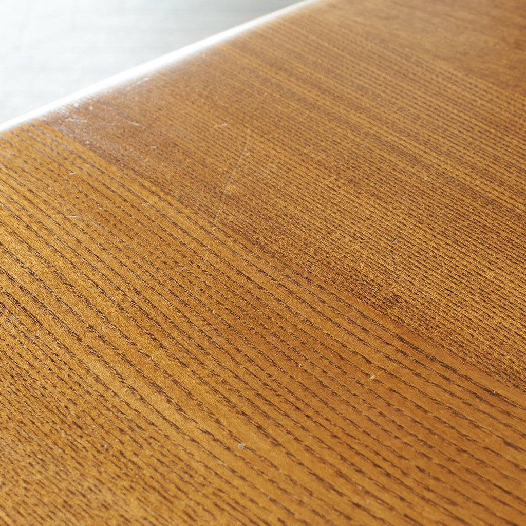 現代的な間取りでも使いやすいレクタングル(長方形)タイプの天板仕様。生活スタイルやシーンに応じて気軽にサイズを変えることができるドロップリーフテーブル。レクタングルのドロップリーフはヴィンテージ市場でも見かけることの少ないレアなモデルです。伝統的な製法とモダンなデザインを融合させたデザインが特徴のアーコール社のテーブル。軽やかでシンプル、さりげないデザインで飾らないスタイルはどこか存在感があり使い込むほどに愛着の湧く不思議な魅力を持っています。天板のエッジは手触りの良い丸みを持った仕上げが施されており、優しい雰囲気とすっきりとした脚とのバランスが良い一品です。
