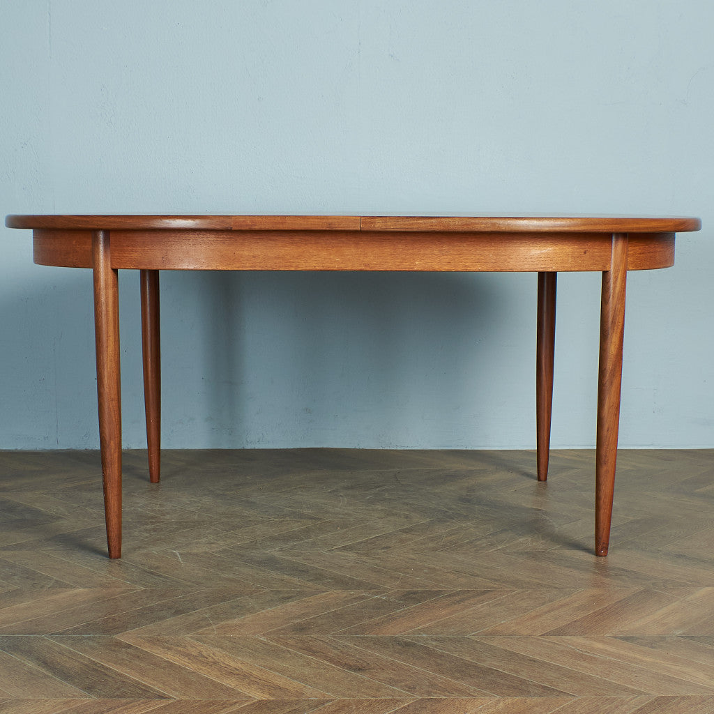 イギリスにおいてミッドセンチュリーを代表するブランド G-PLAN(ジープラン)による、Victor Bramwell Wilkins(ビクター・ブラムウェル・ウィルキンス)デザイン、オーバルエクステンションダイニングテーブルです。