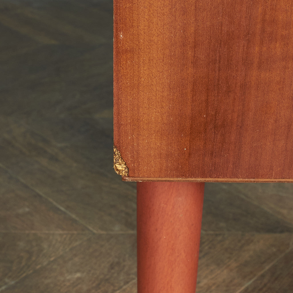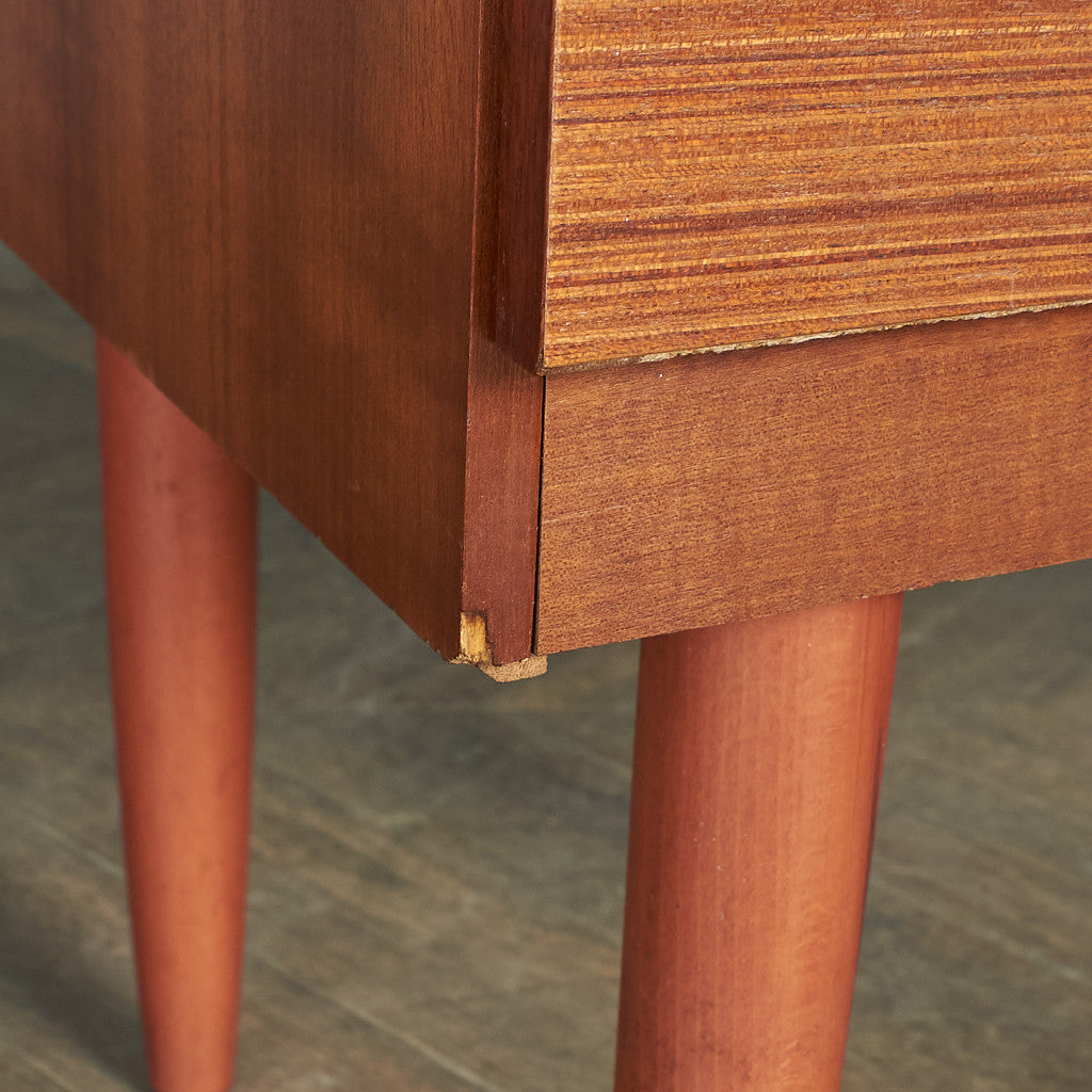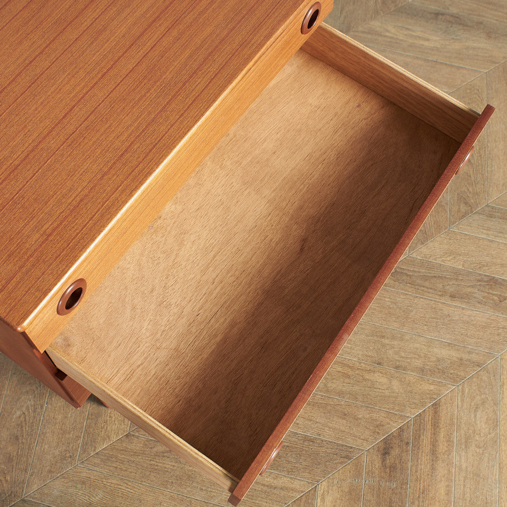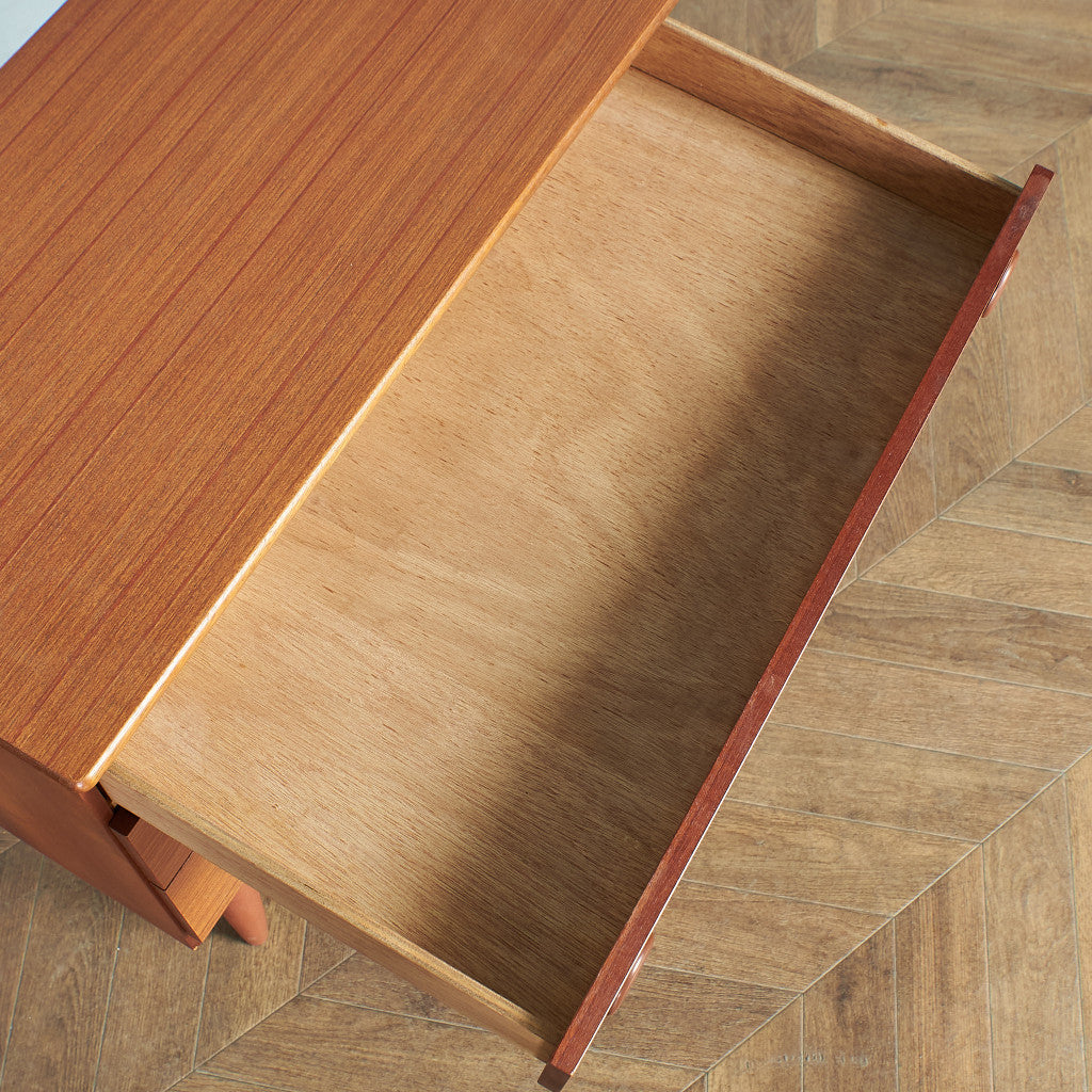 今では希少な高級材であるチーク材を使用した、温かみのある褐色の木肌が印象的。実用的でありながらも作り手のこだわりを感じさせる、北欧の年代物とも相性の良いヴィンテージファニチャーです。