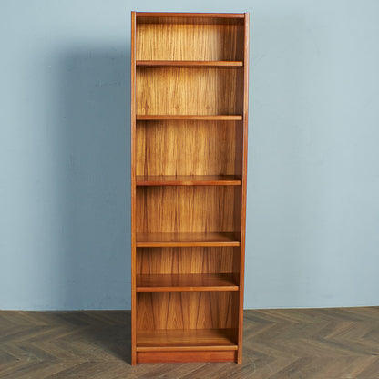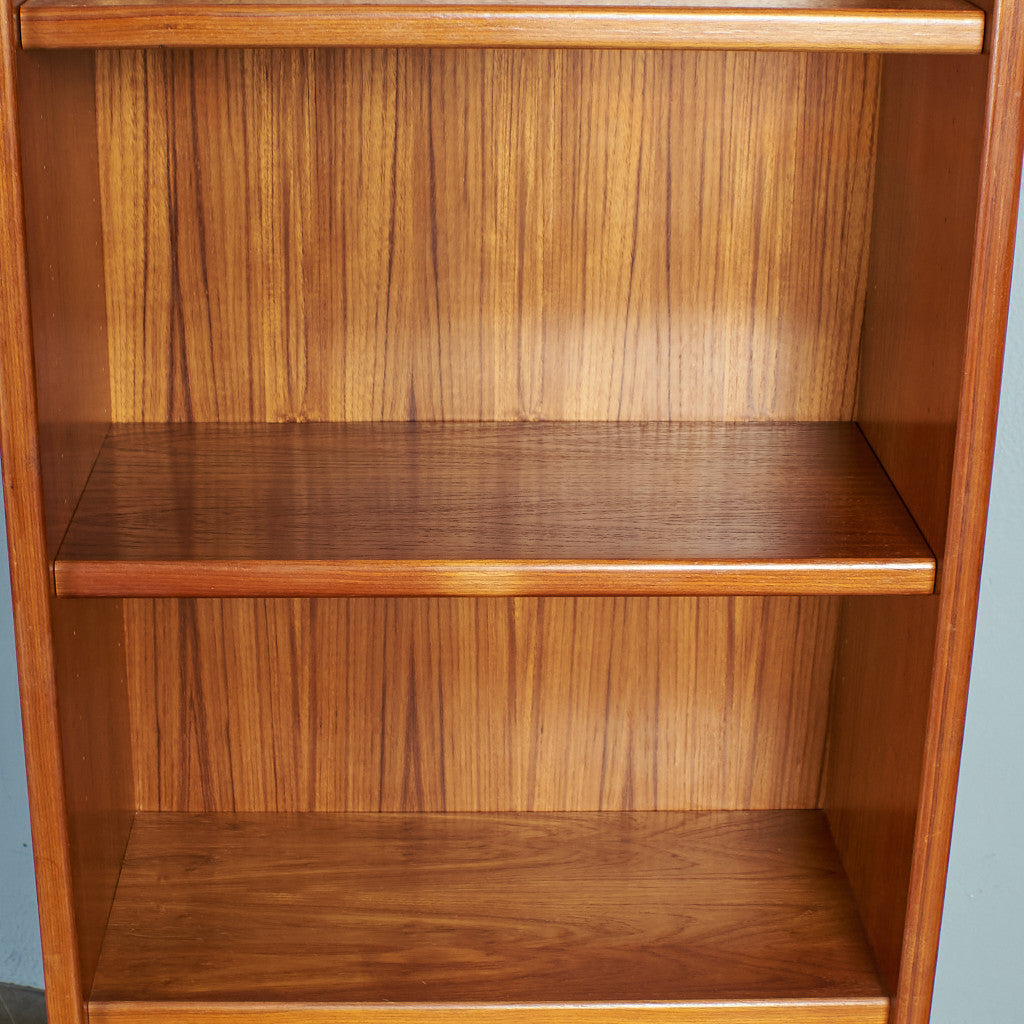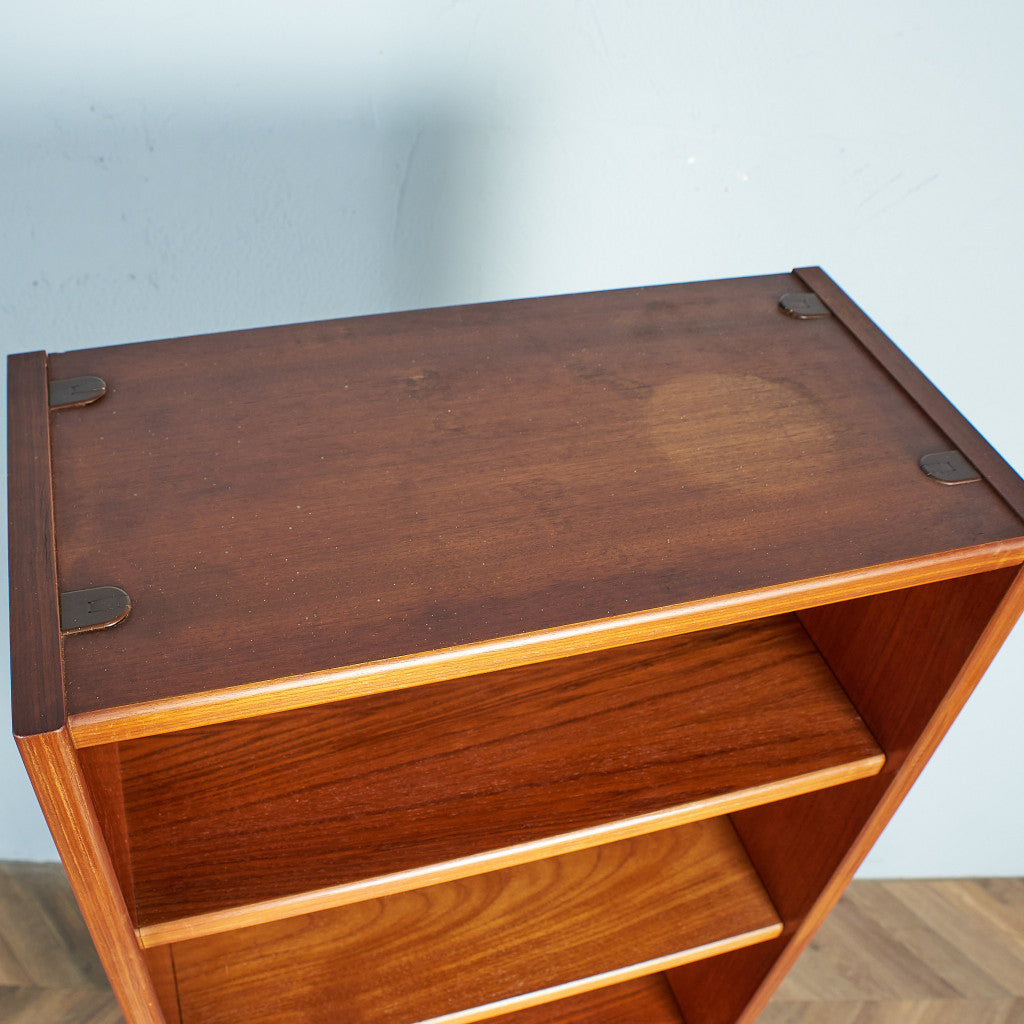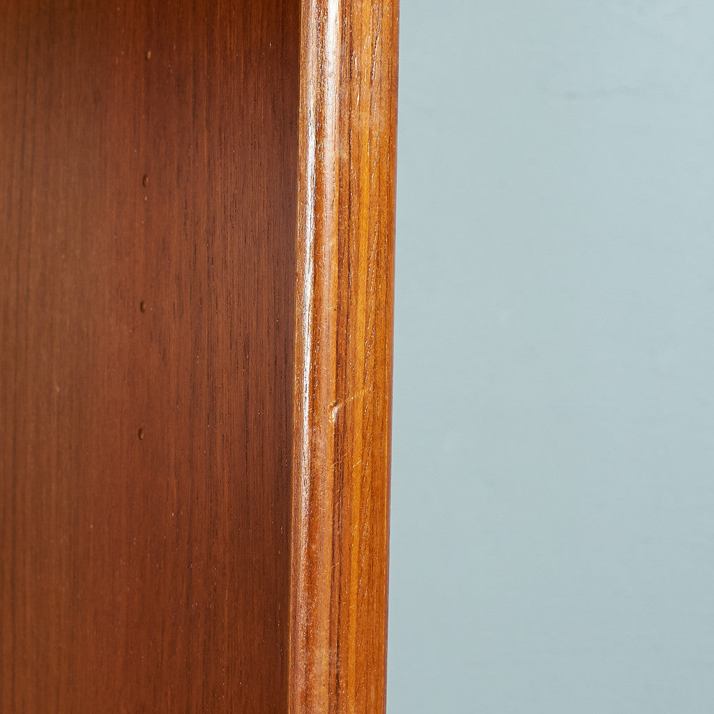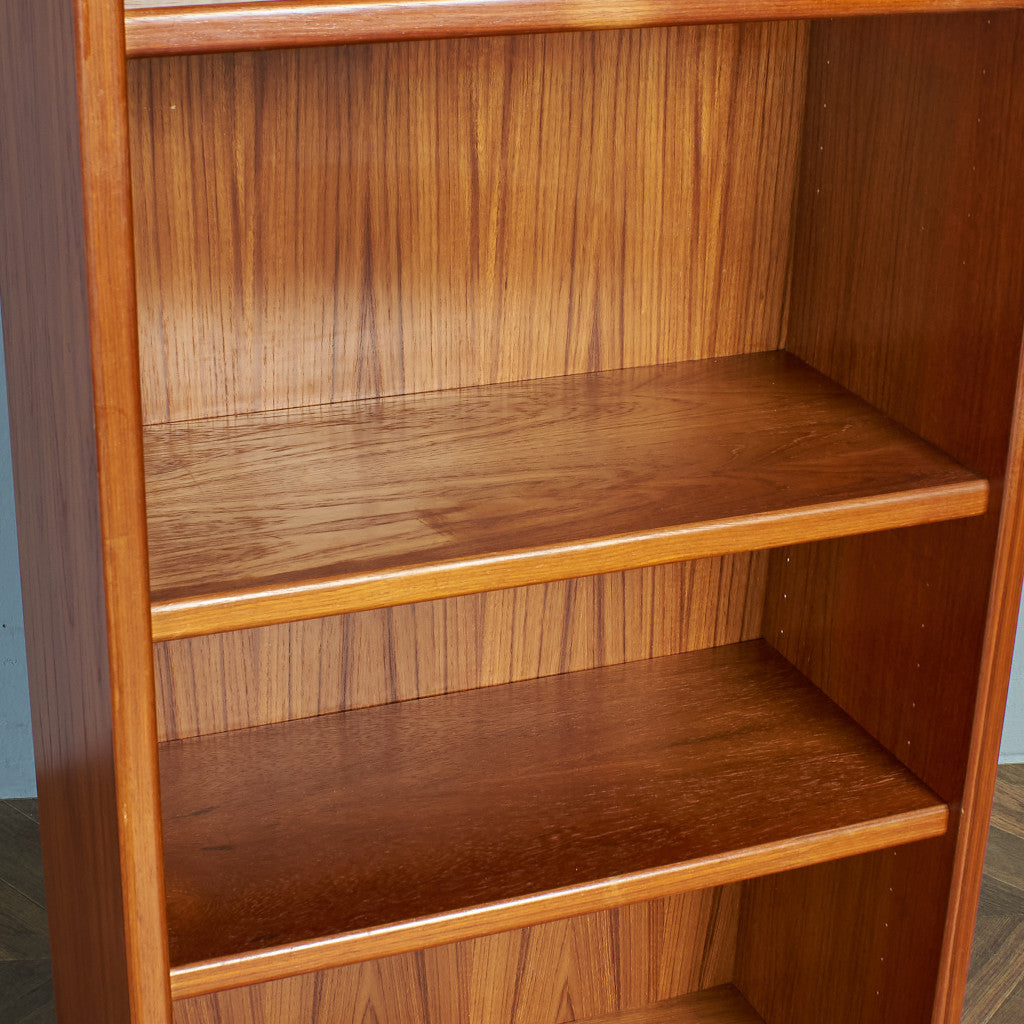 チーク材を使用した、オープン仕様のブックシェルフ。シンプルながらも細部に作り手のこだわりを感じる、北欧家具黄金期のヴィンテージファニチャーです。スリムなので使い勝手がよく、高さに充分なスペースがあるため収納力も豊富です。
