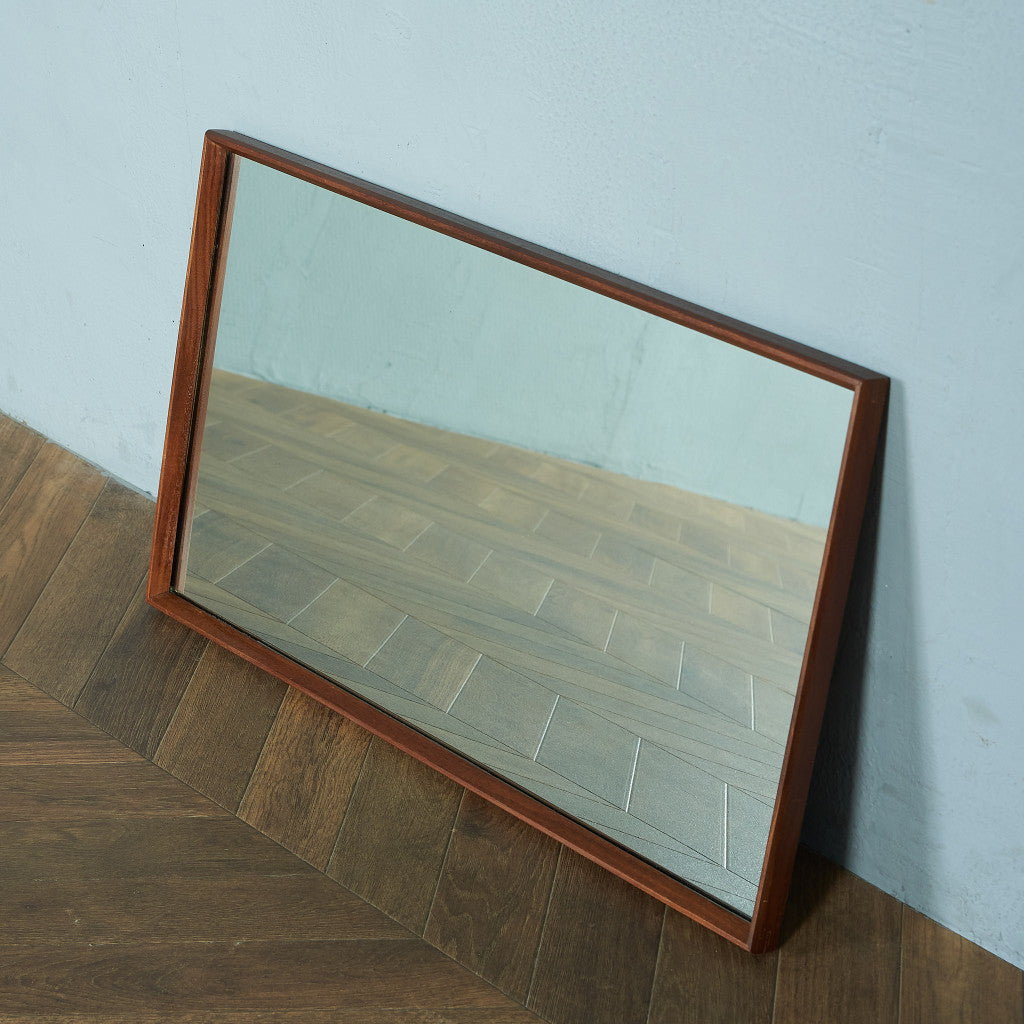 北欧スタイルのデザインが美しいヴィンテージミラー。デンマークの年代物やミッドセンチュリーインテリアとも相性の良いお品です。