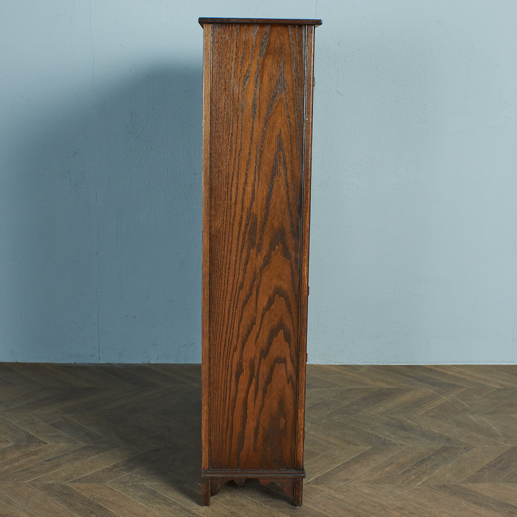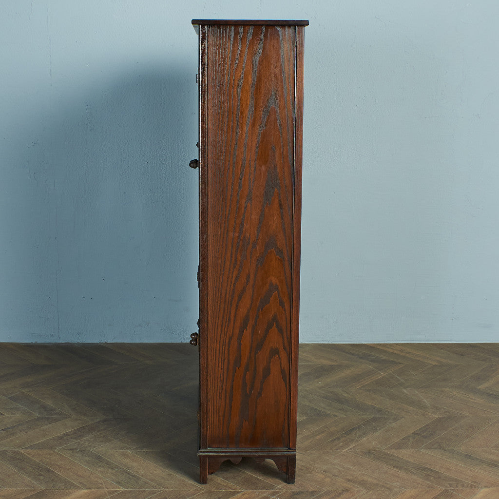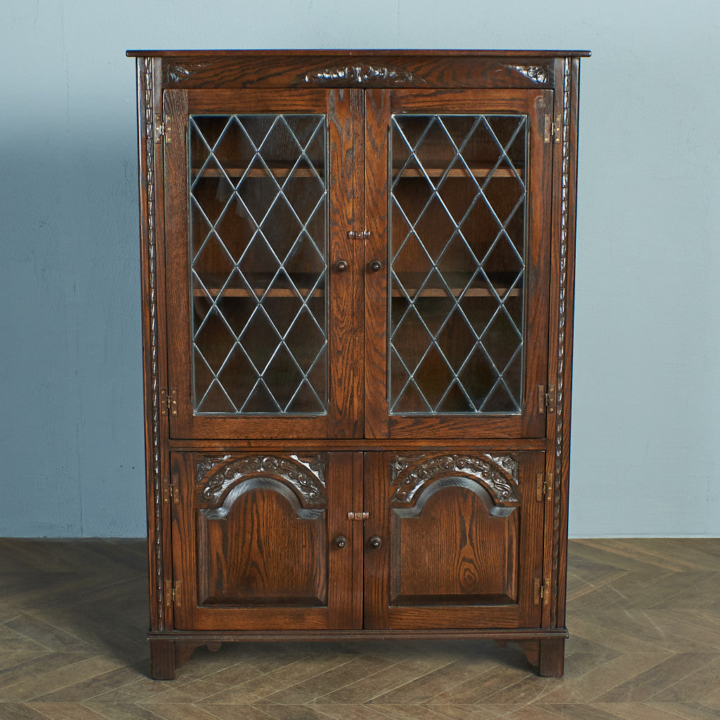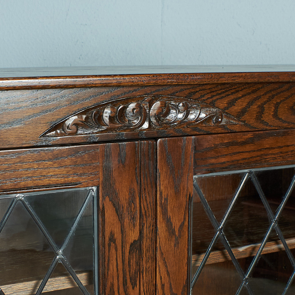 力強い木目のオーク材を用い、英国伝統様式を忠実に再現。細部まで施された装飾やケイムのガラス扉など、シックなデザインが魅力です。リビングやダイニングはもちろん、店舗什器としても活躍してくれるお品です。