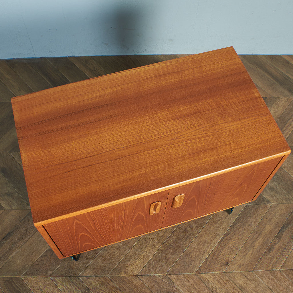 英国ミッドセンチュリーの筆頭ブランド、G-PLAN(ジープラン)による、Victor Bramwell Wilkins(ビクター・ブラムウェル・ウィルキンス)デザイン『Fresco(フレスコ)』シリーズ、カスタム アイアンレッグ サイドキャビネットです。