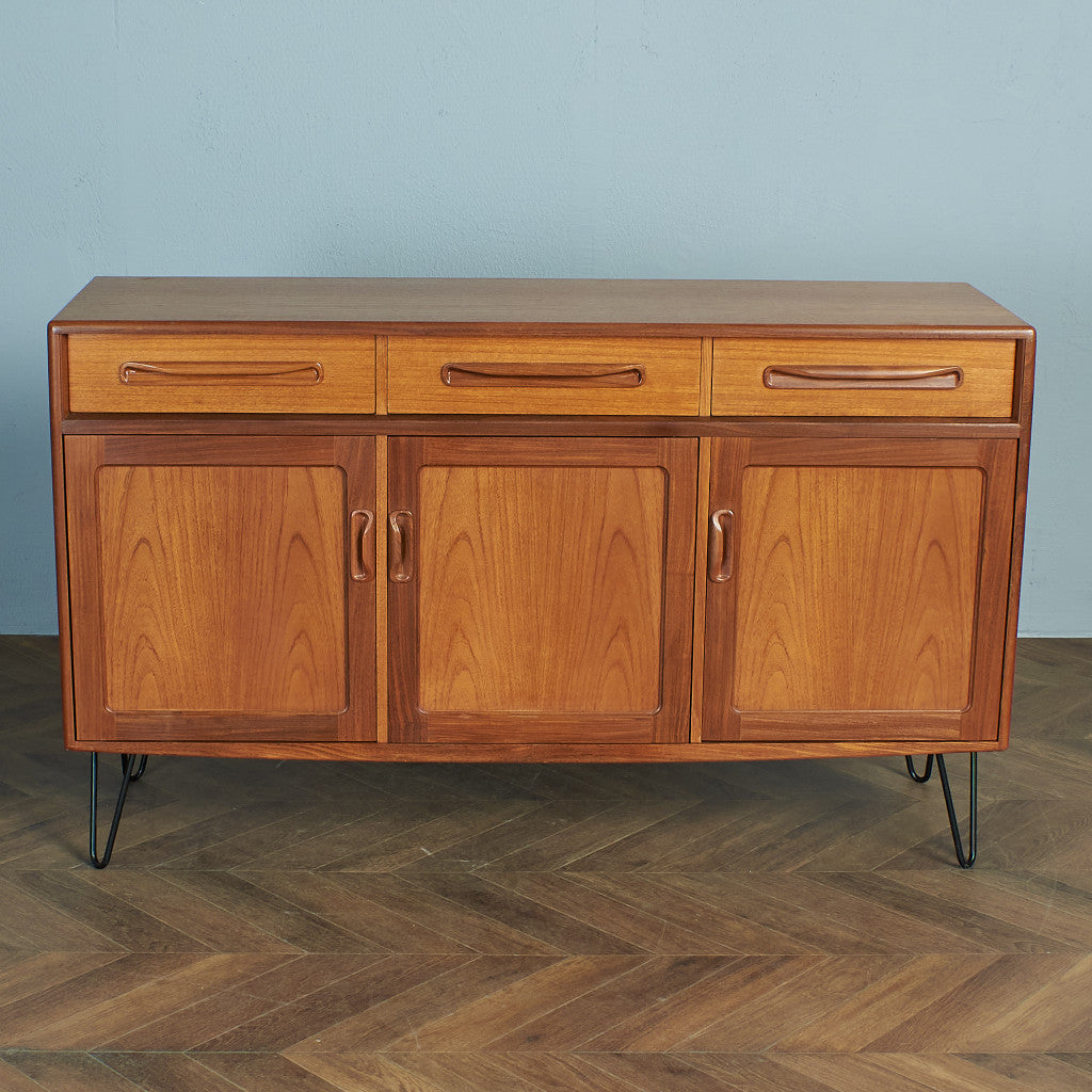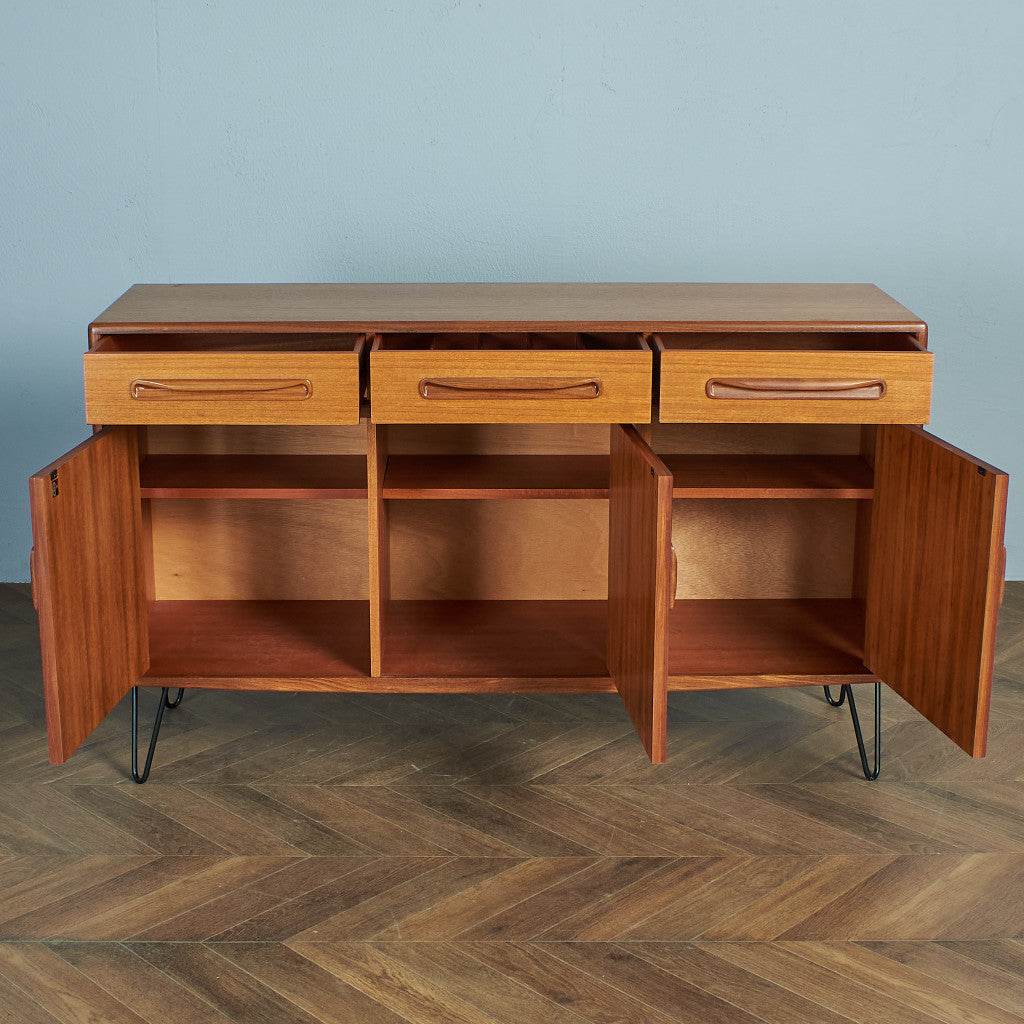 イギリスのミッドセンチュリーを代表するブランド G-PLAN(ジープラン)による、Victor Bramwell Wilkins(ビクター・ブラムウェル・ウィルキンス)デザイン、『Fresco(フレスコ)』 サイドボード/Base Unit(4075D) カスタム アイアンヘアピンレッグです。
